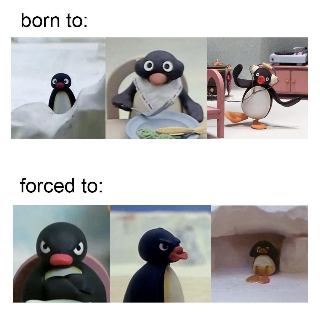 I’m a bit worn out by living in London so I feel like the Pingu in the bottom panel these days.