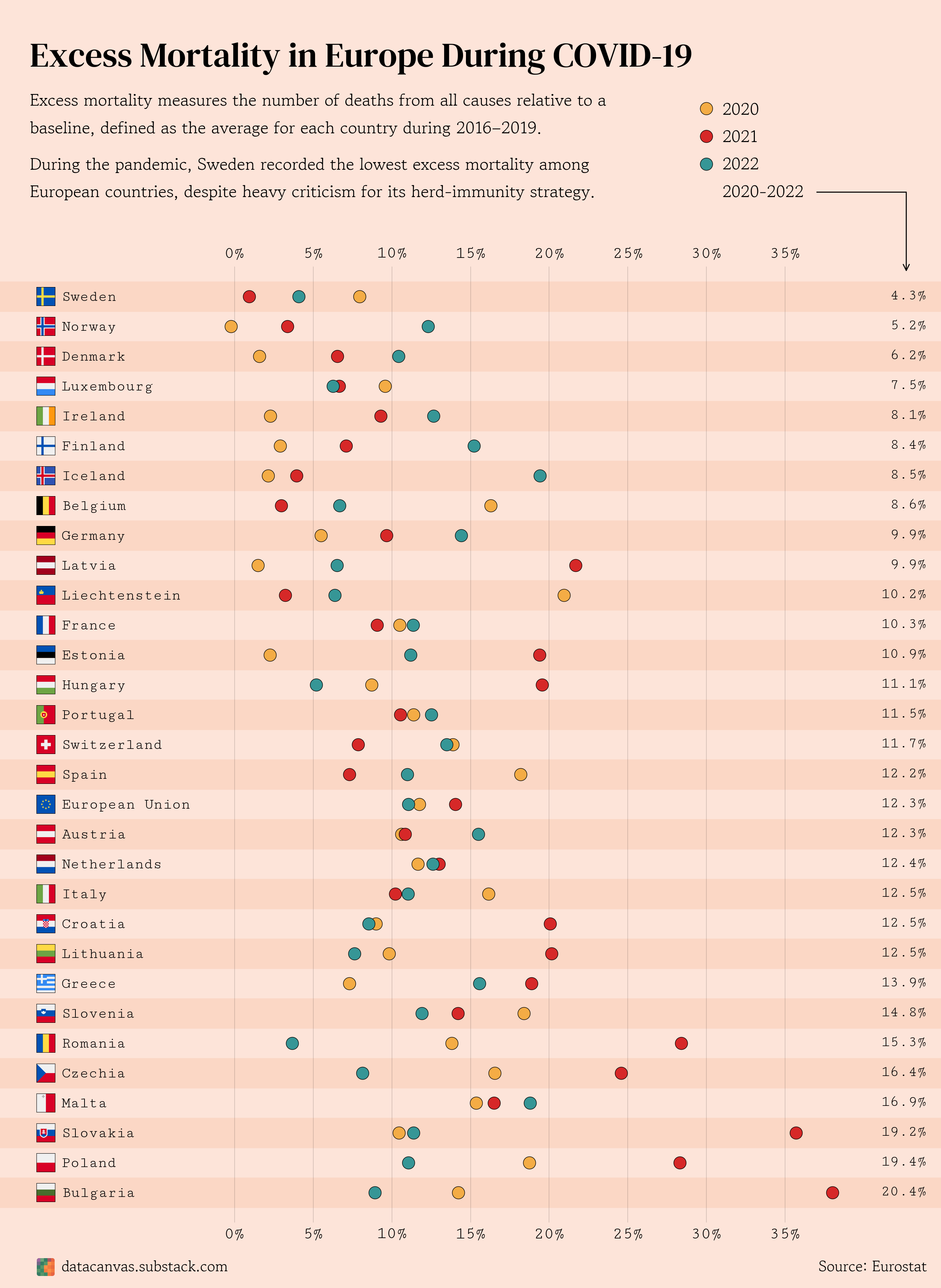 It turns out that Sweden recorded the lowest numbers of excess mortality of all European countries.