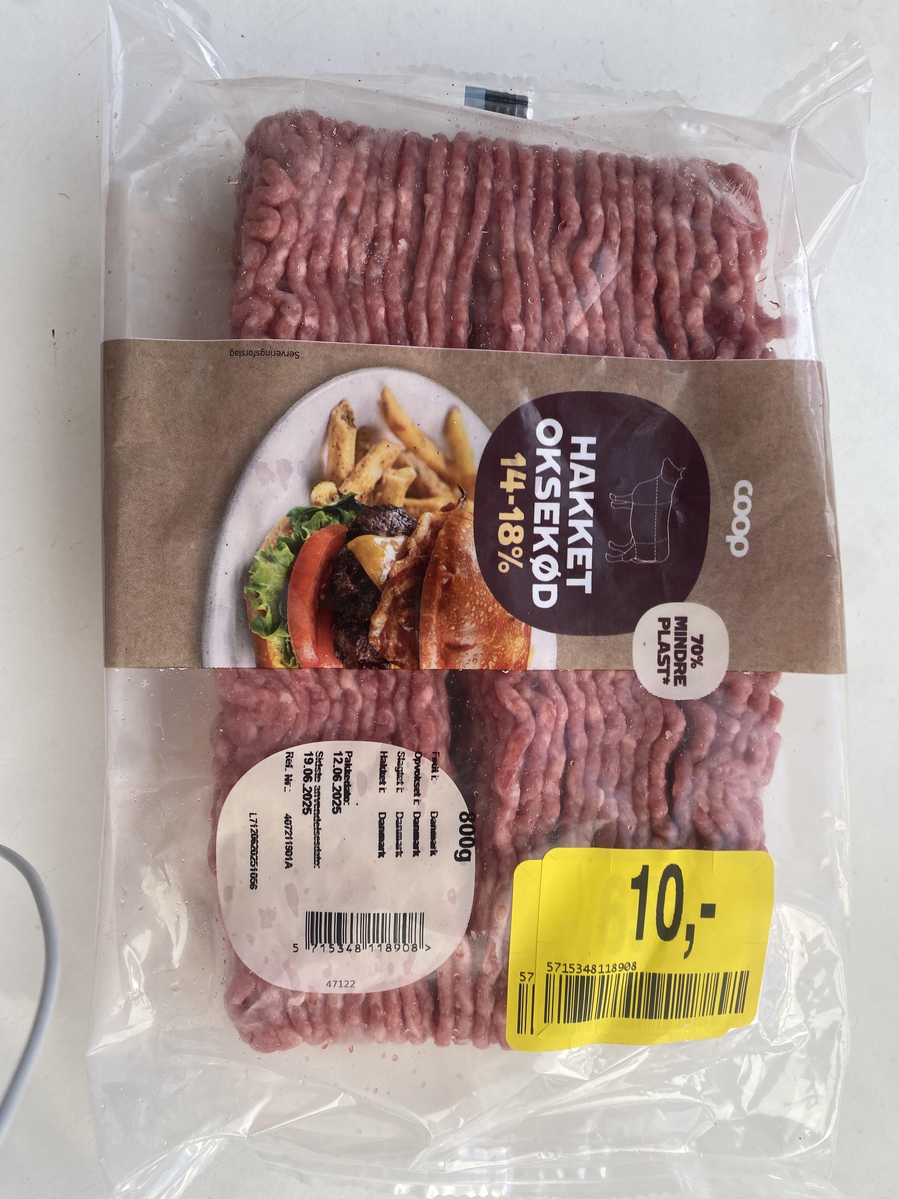 Til gengæld så jeg en pakke hakket okse til 65kr i COOP365 den anden dag. For 400gr. Og det var ikke øko.