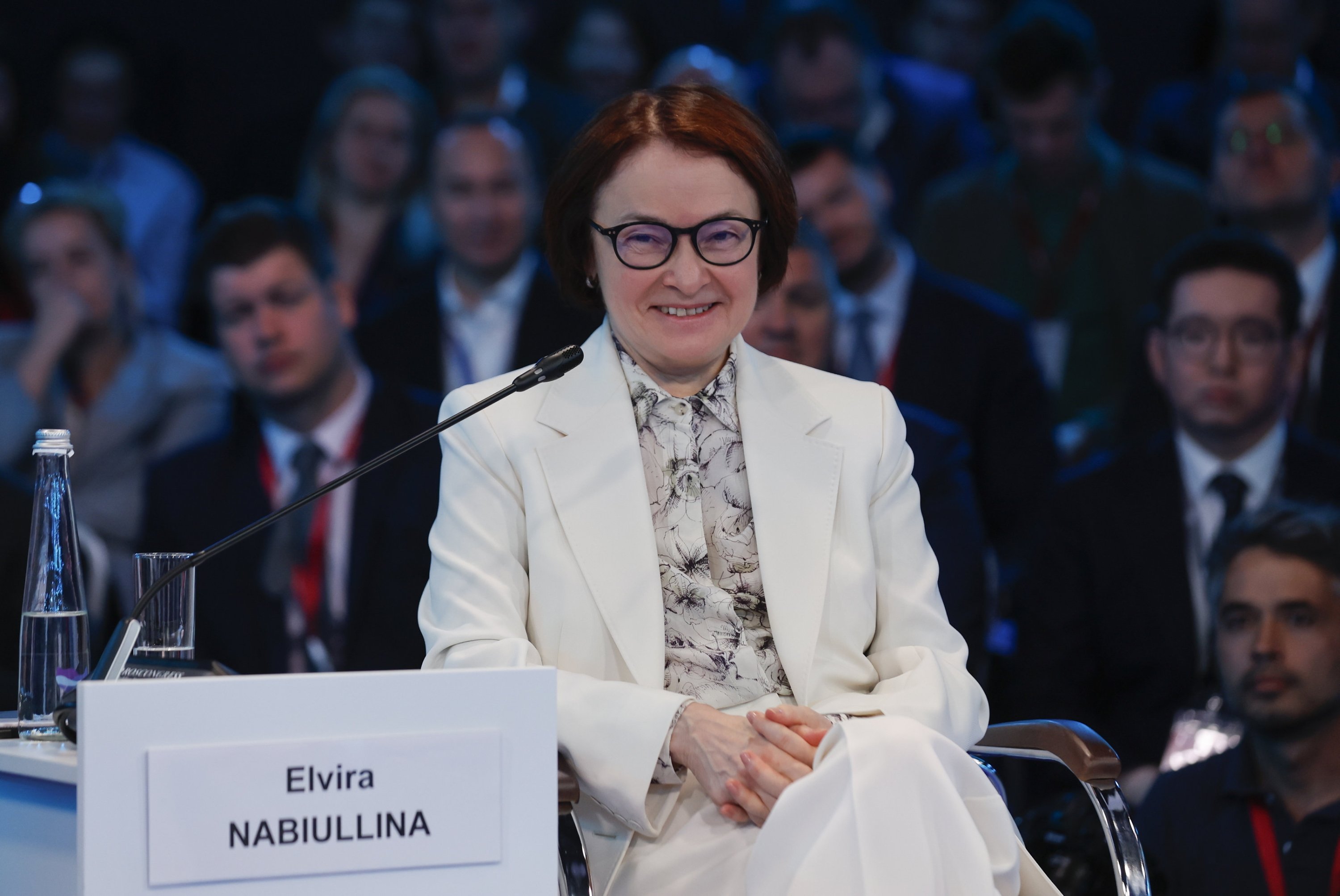 Central Bank of the Russian Federation Governor Elvira Nabiullina attends a plenary session of the 28th St. Petersburg International Economic Forum (SPIEF) in St. Petersburg, Russia, June 20, 2025. (EPA Photo)