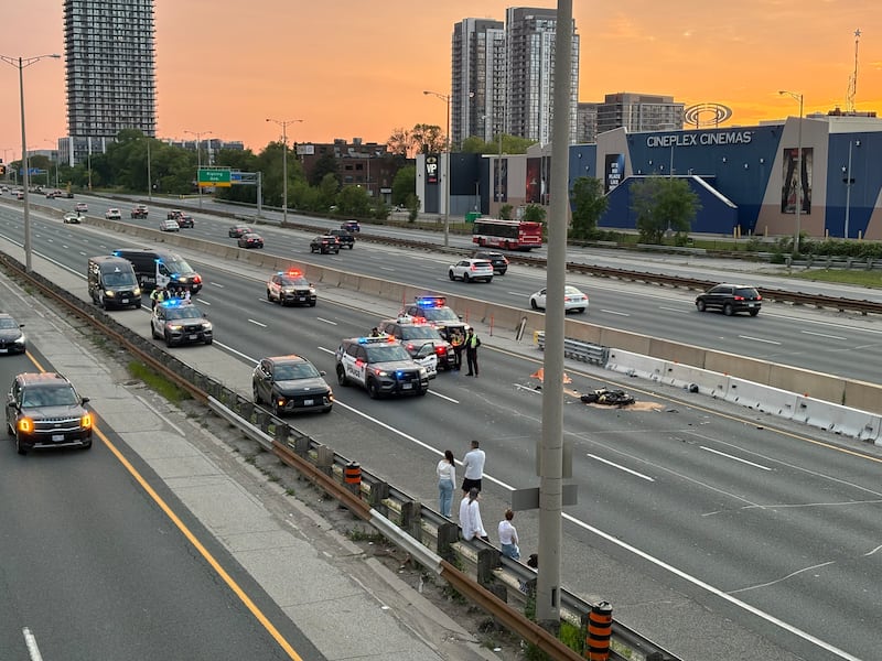 Emergency services got a call for a collision in the eastbound express lanes, west of Islington Avenue, just before 7:45 p.m.