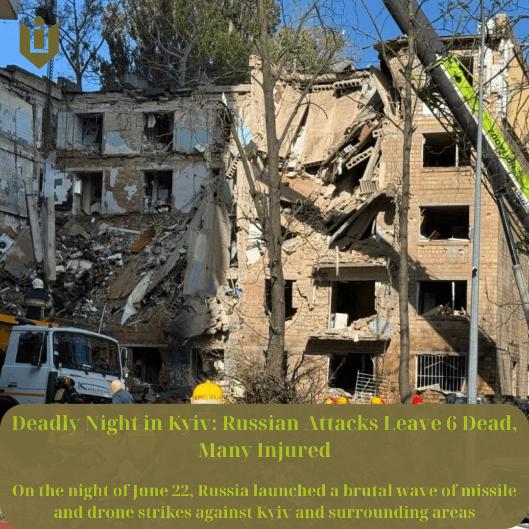 On the night of June 22, Russia launched a brutal wave of missile and drone strikes against Kyiv and surrounding areas. Hardest hit: Shevchenkivskyi district, where part of a high-rise apartment building was completely destroyed. 6 confirmed dead, 19 injured (including a child and a pregnant woman).