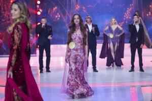 The contestants first appeared on stage in sportswear, followed by the so-called creative tour, in which each girl wore a different outfit designed by a Hungarian fashion designer, this time inspired by the color of the year, mocha mousse. The contestants then took to the catwalk in national costumes designed by Millaas Fashion and evening gowns by Orsolya Dachi.