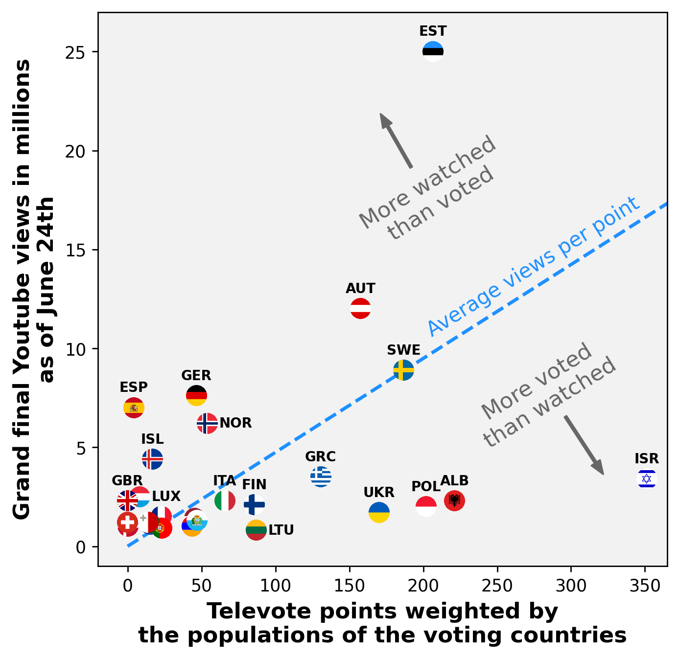 Is this saying that single person in Estonia has watched Eurovision on Youtube 18 times in the last month?? That’s absolutely wild, especially compared to the UK, where each person has watched it about 0.03 times.