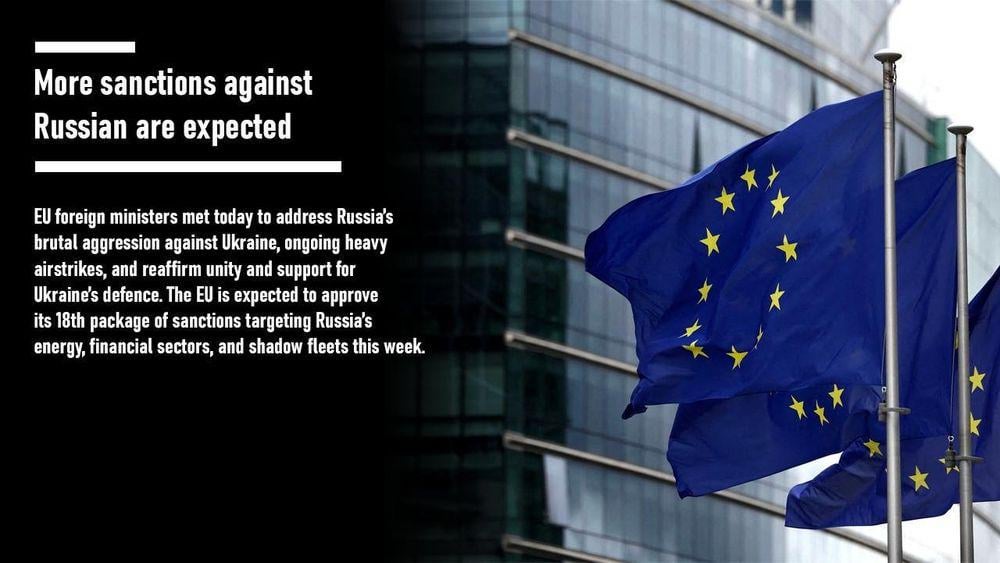 EU foreign ministers met today to address Russia’s brutal aggression against Ukraine, ongoing heavy airstrikes, and reaffirm unity and support for Ukraine’s defence. The EU is expected to approve its 18th package of sanctions targeting Russia’s energy, financial sectors, and shadow fleets this week.