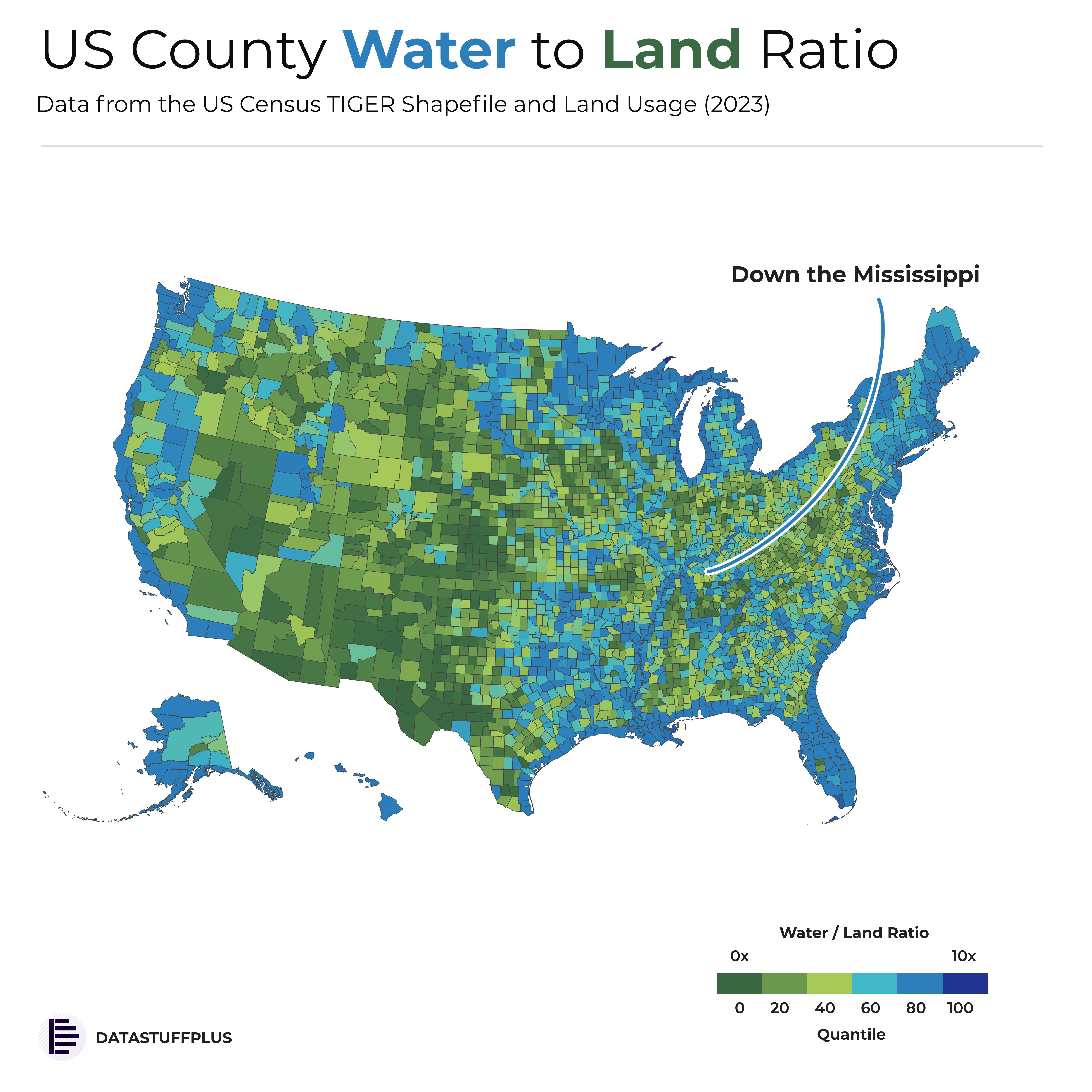 Somehow adding that legend has made this graph more confusing [than the last one](https://www.reddit.com/r/dataisbeautiful/comments/1llvw7a/oc_ratio_of_water_to_land_area_by_county_in_the/).
