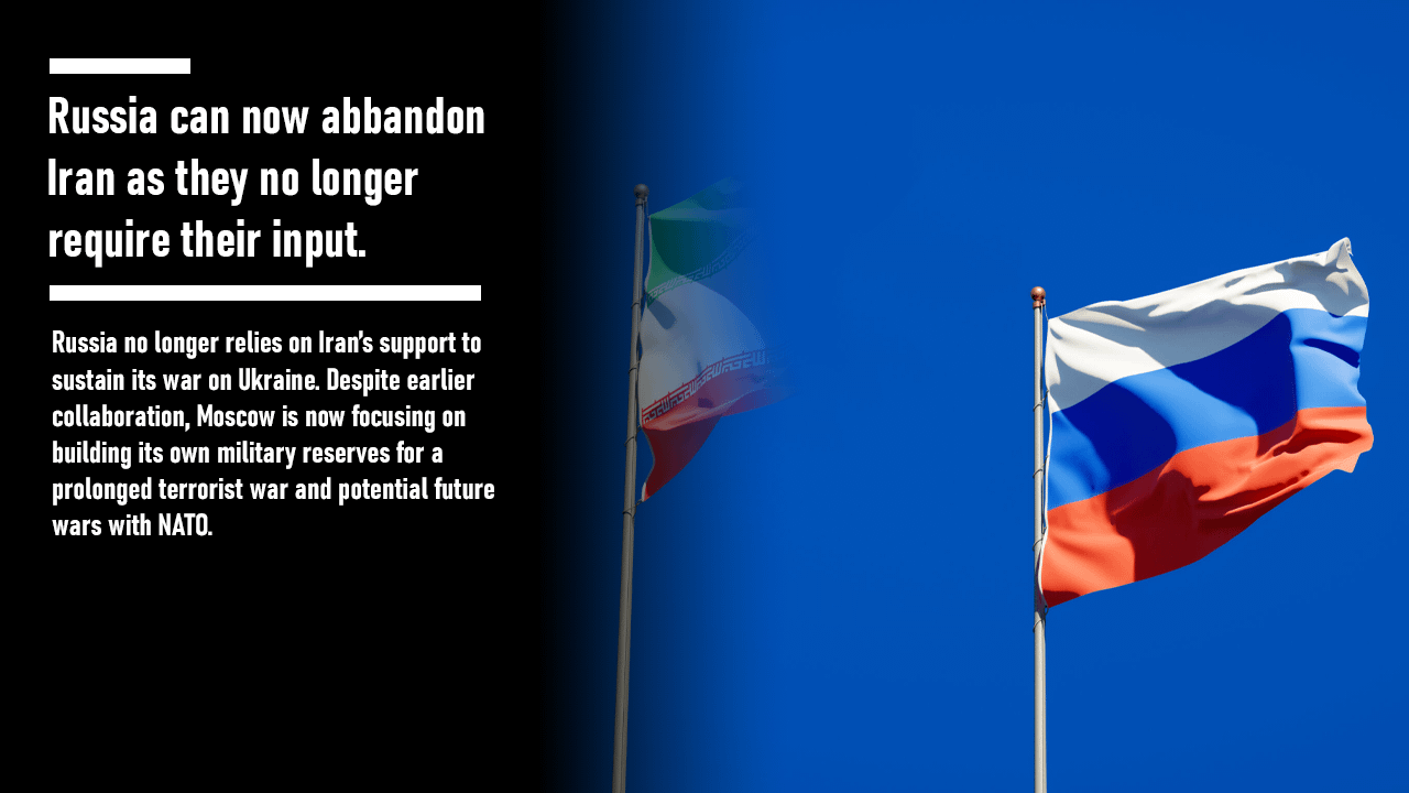 Russia no longer relies on Iran’s help to continue its war on Ukraine. Despite previous coordination, Moscow is now focusing on developing its own military reserves in preparation for a long-term terrorist war and potential future confrontations with NATO.