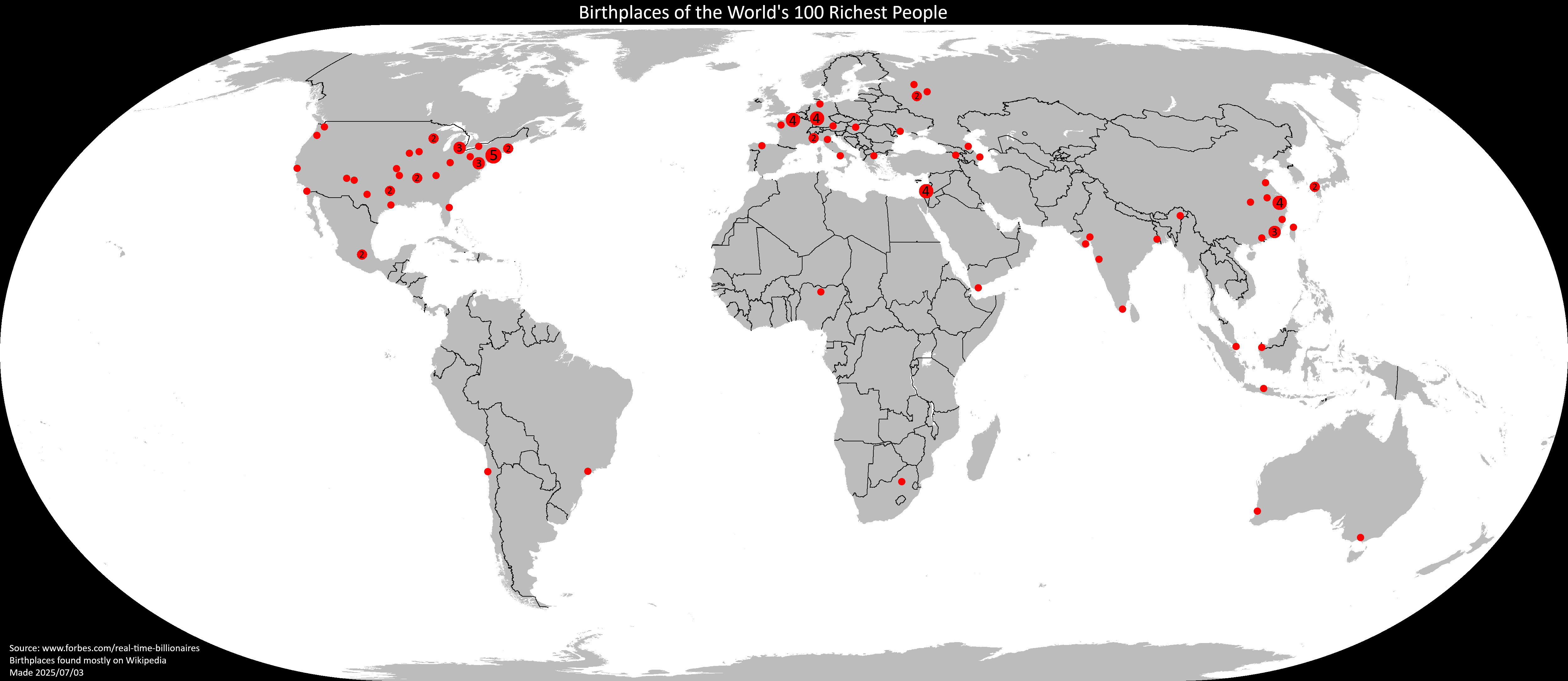 does the dot size represent their net worth? or does it represent more than one person being born in that place
