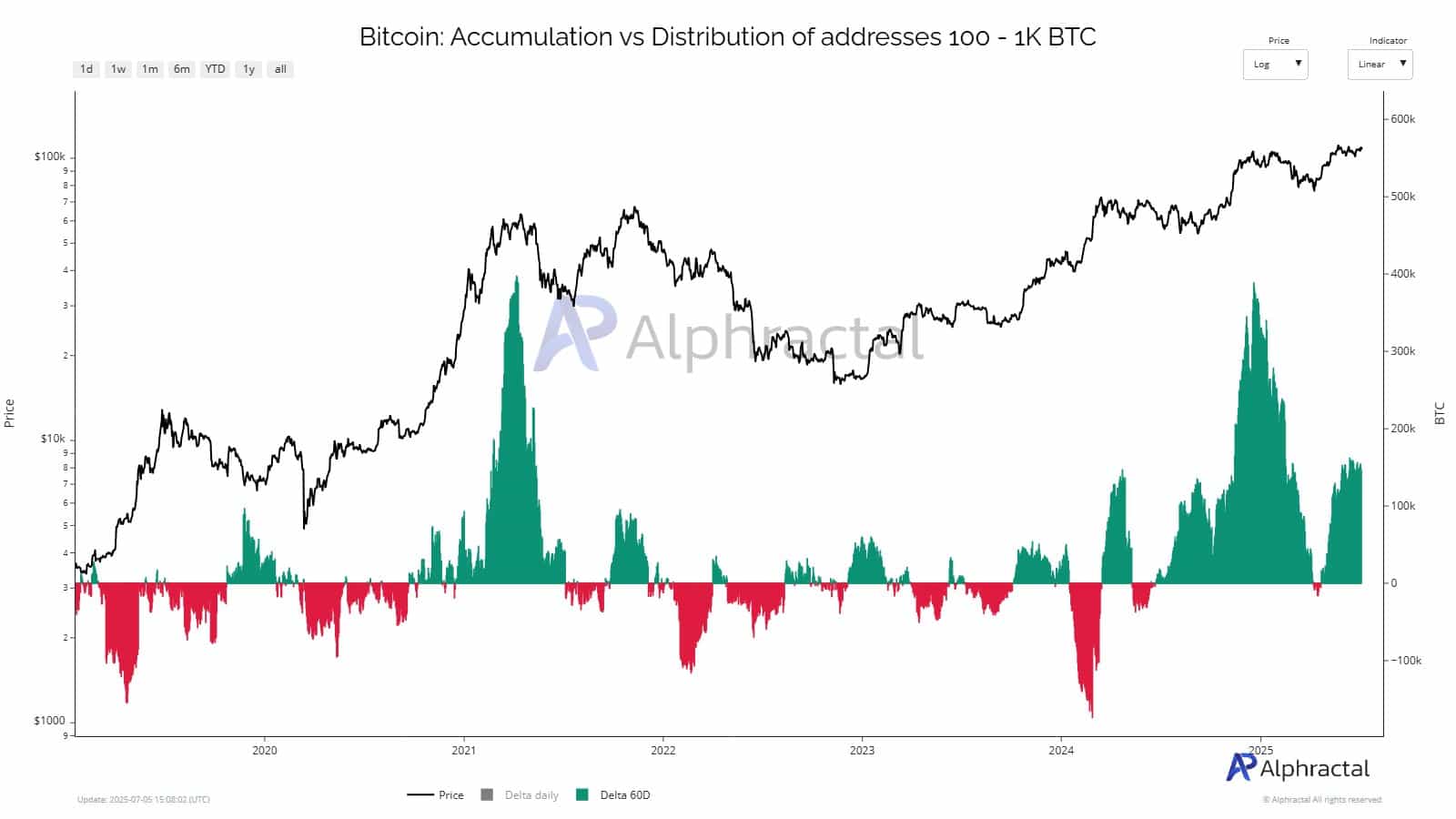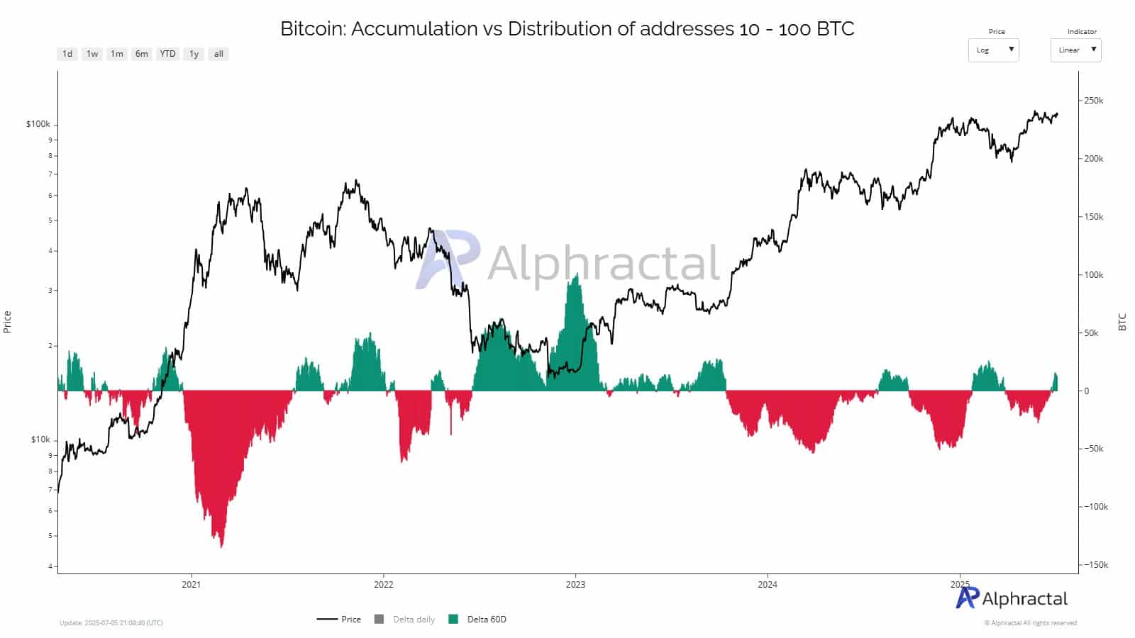 New data revealed that wallets holding 10K to 100K BTC have resumed accumulation for the first time since March 2025 and July 2024, breaking a nearly year-long trend of sell-side pressure.