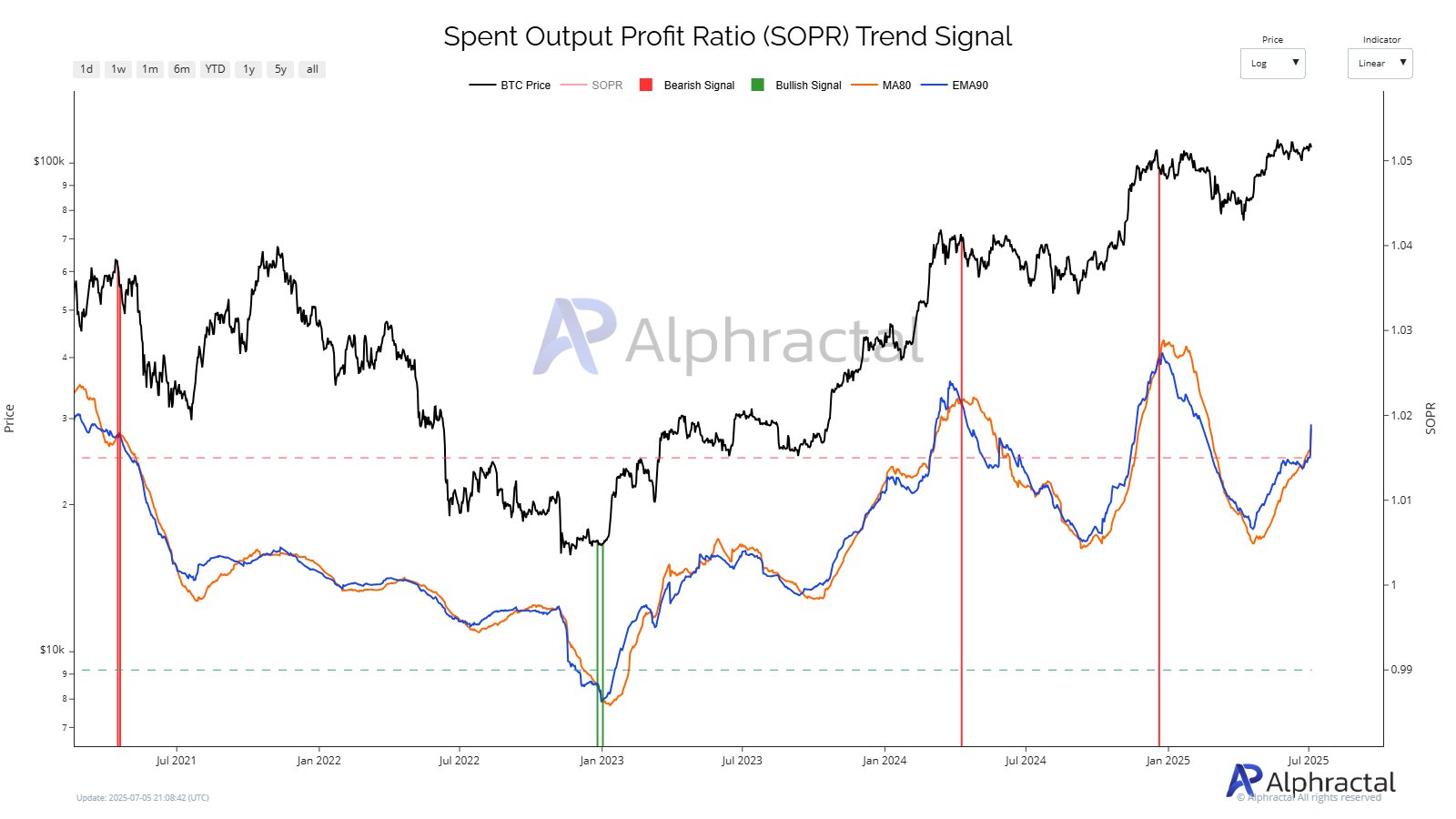 The SOPR is once again on the rise, an unprecedented third surge within the same bull cycle.