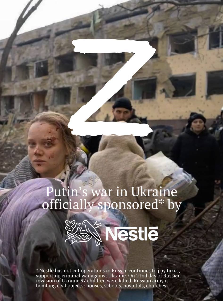Det ägs av det schweiziska livsmedelsföretaget Nestle som fortfarande bedriver verksamhet som vanligt i Ryssland (!)