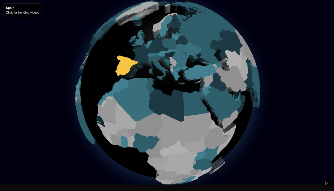 Tech stack: Next.js, Tailwind CSS, YouTube Data API, globe-gl, Upstash (for caching), deployed on Netlify.