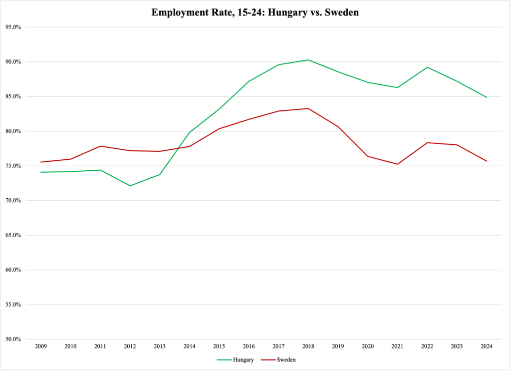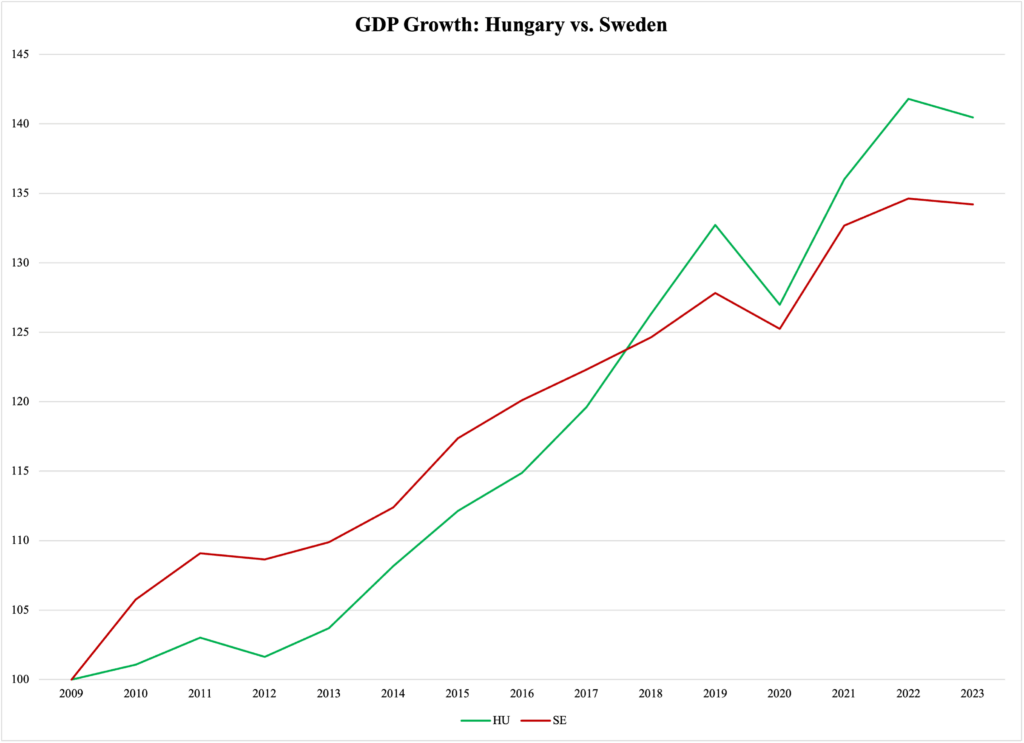 The comparison becomes even more compelling if we concentrate on the 2015-2019 period, the latest with synchronized global economic growth. During those years, Swedish GDP expanded by 2.6% per year, while the Hungarian economy averaged 4.2%.