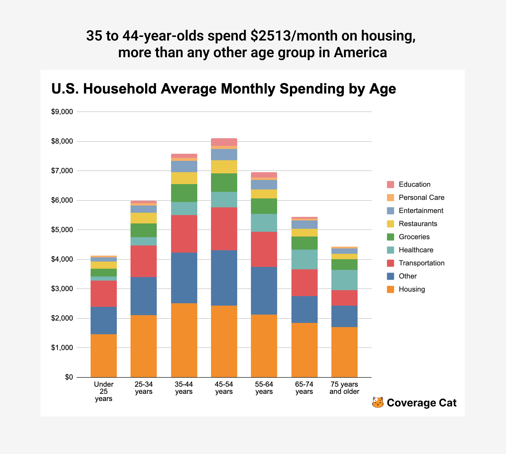 Data Source: Bureau of Labor and Statistics Consumer Expenditure Survey, Age of Reference Person Table, 2023