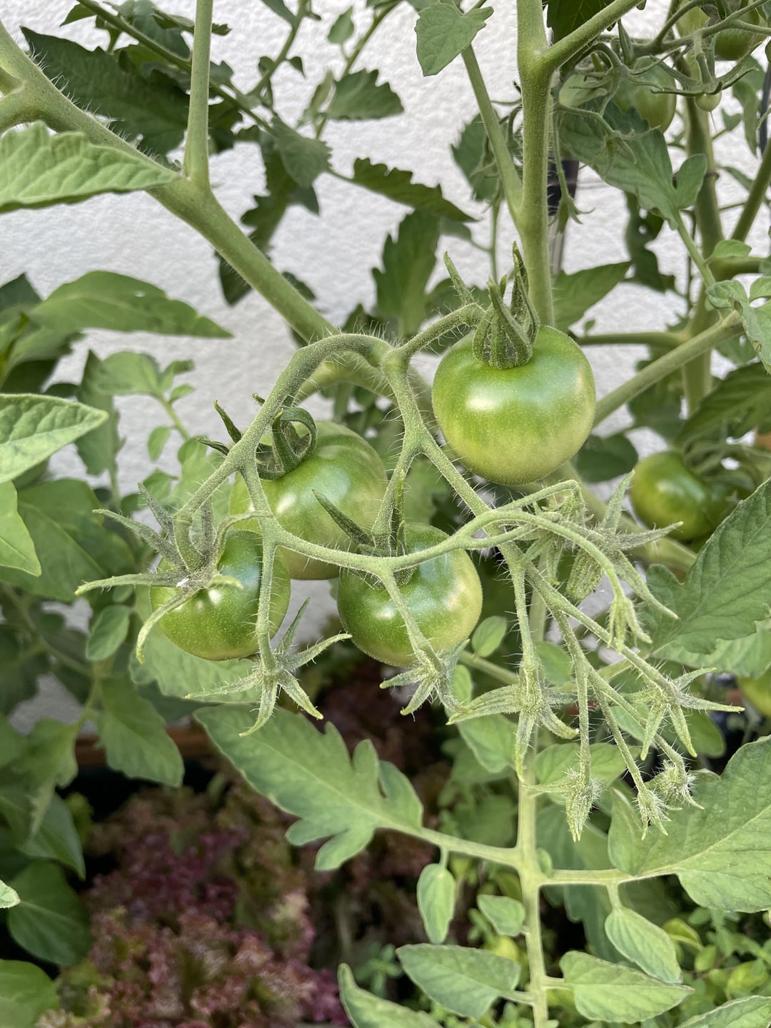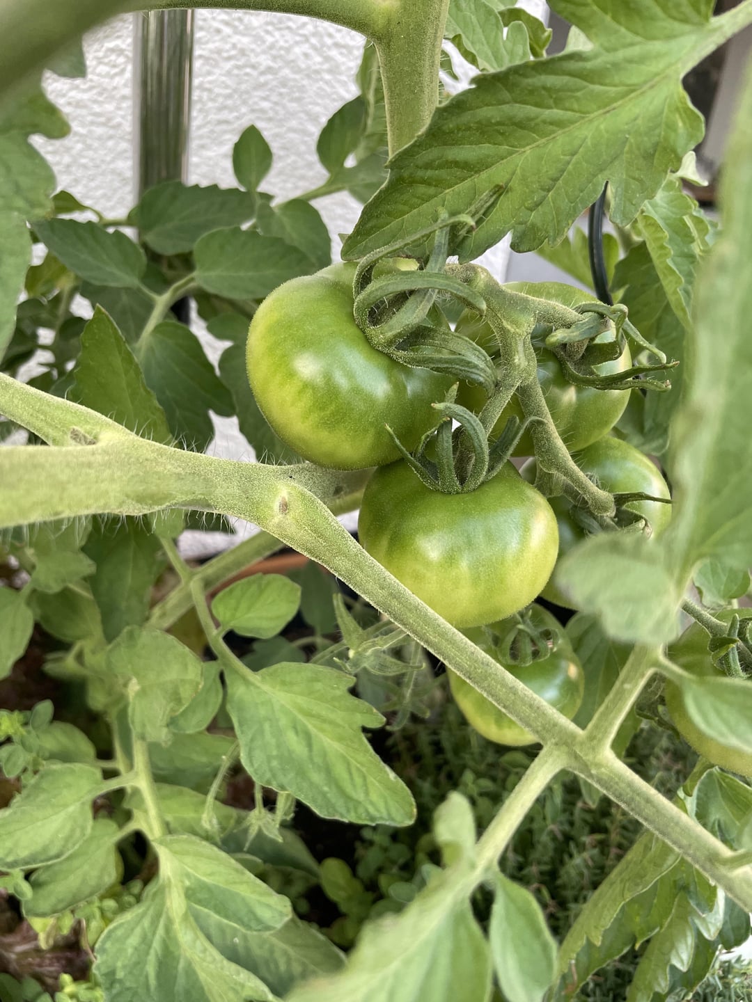 An der Paprika hängen 8 Stück dran und Tomaten…..unzählige in verschiedenen Stadien 😅 Bis jetzt wirken sie richtig gut und ballern eine Rispe nach der anderen raus