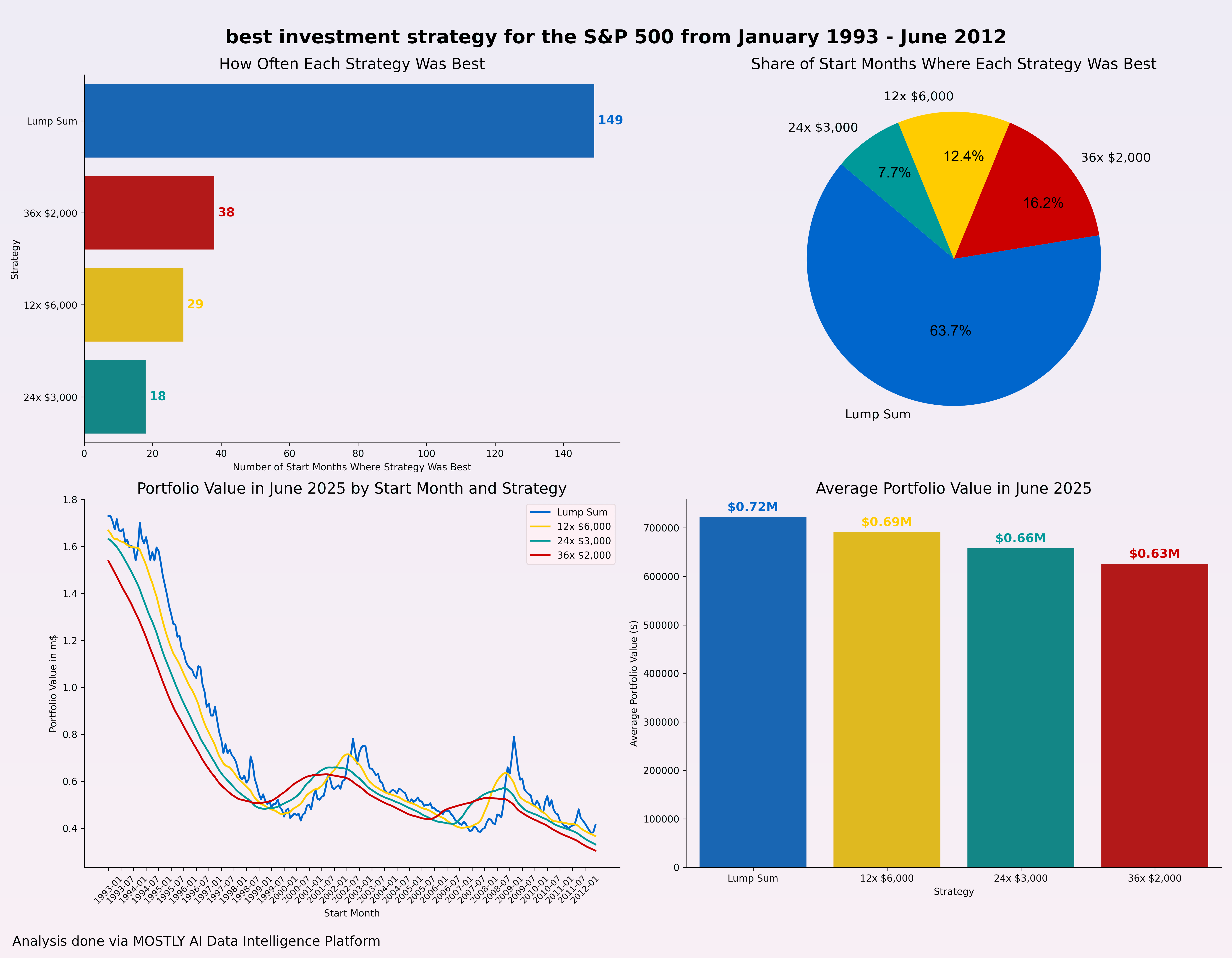 • Only around the dot com crash (2000 – 2002) and the financial crisis (2007 – 2008), lump sum wasn't the best strategy