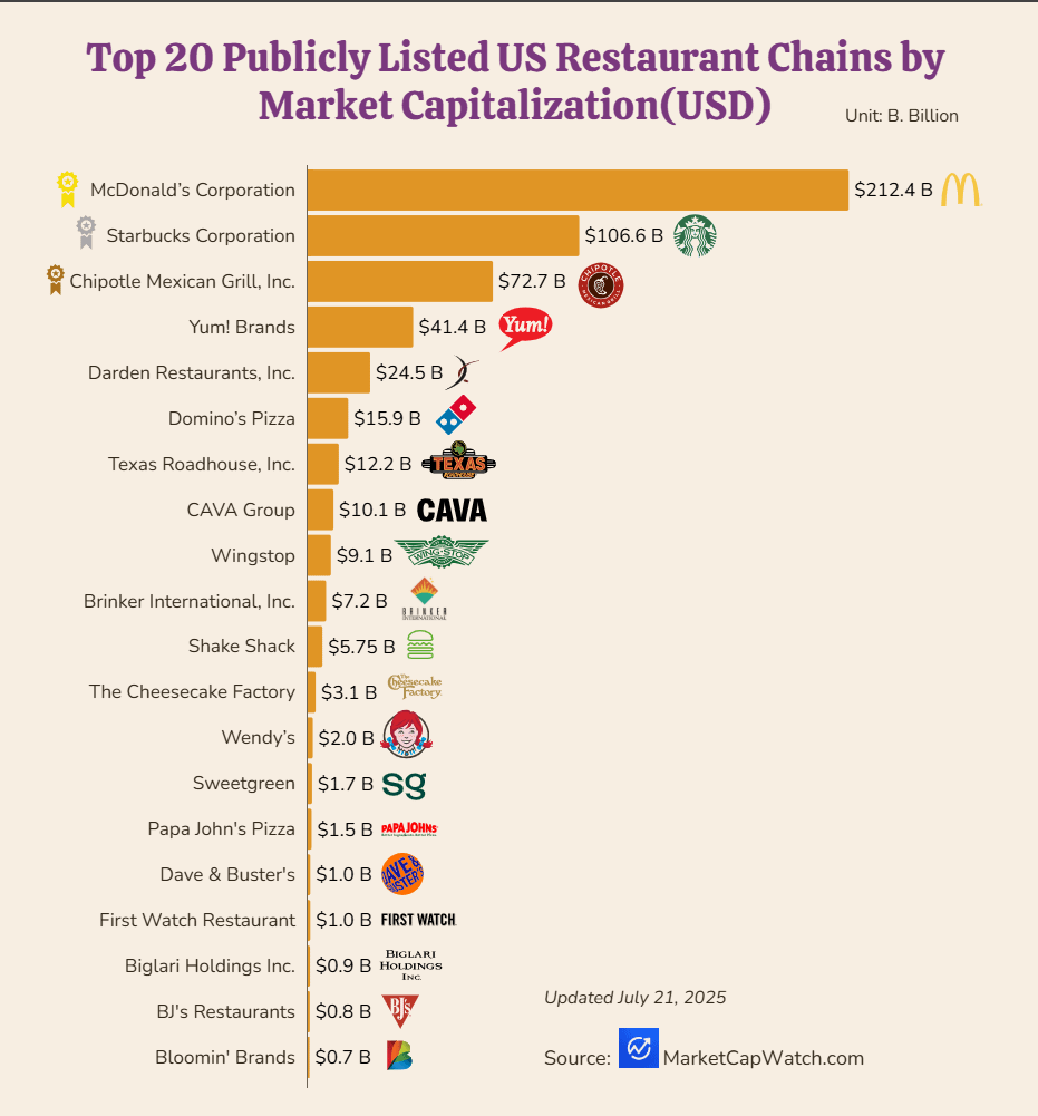 Had no idea McDonald’s market cap was so much higher than everyone else. They are practically the sum of everyone else.