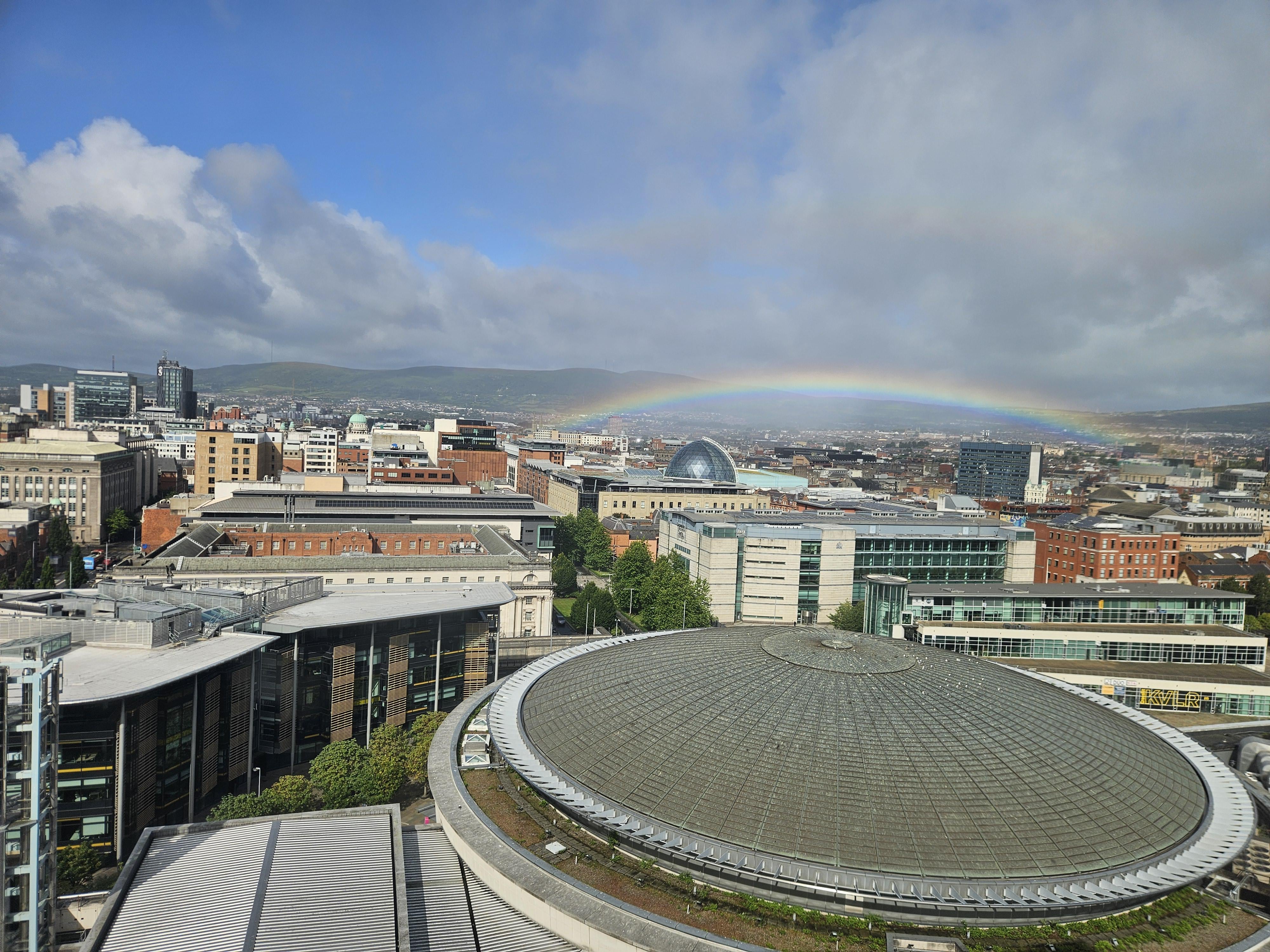 Belfast from our hotel this morning 🌈 by J_PAM19 Tags:Northern IrelandUnited Kingdom 6 comments 🎶🎶Whenever you see a rainbow, whenever you see a rainbow WHENEVER YOU SEE A RAINBOWWWWWWWW ….. Remember primary school indoctrination🎶🎶 Before the deluge. Hilton There will be the odd trampoline obstructing your view by midday. Quare view hai Up above the streets and houses… Comments are closed.