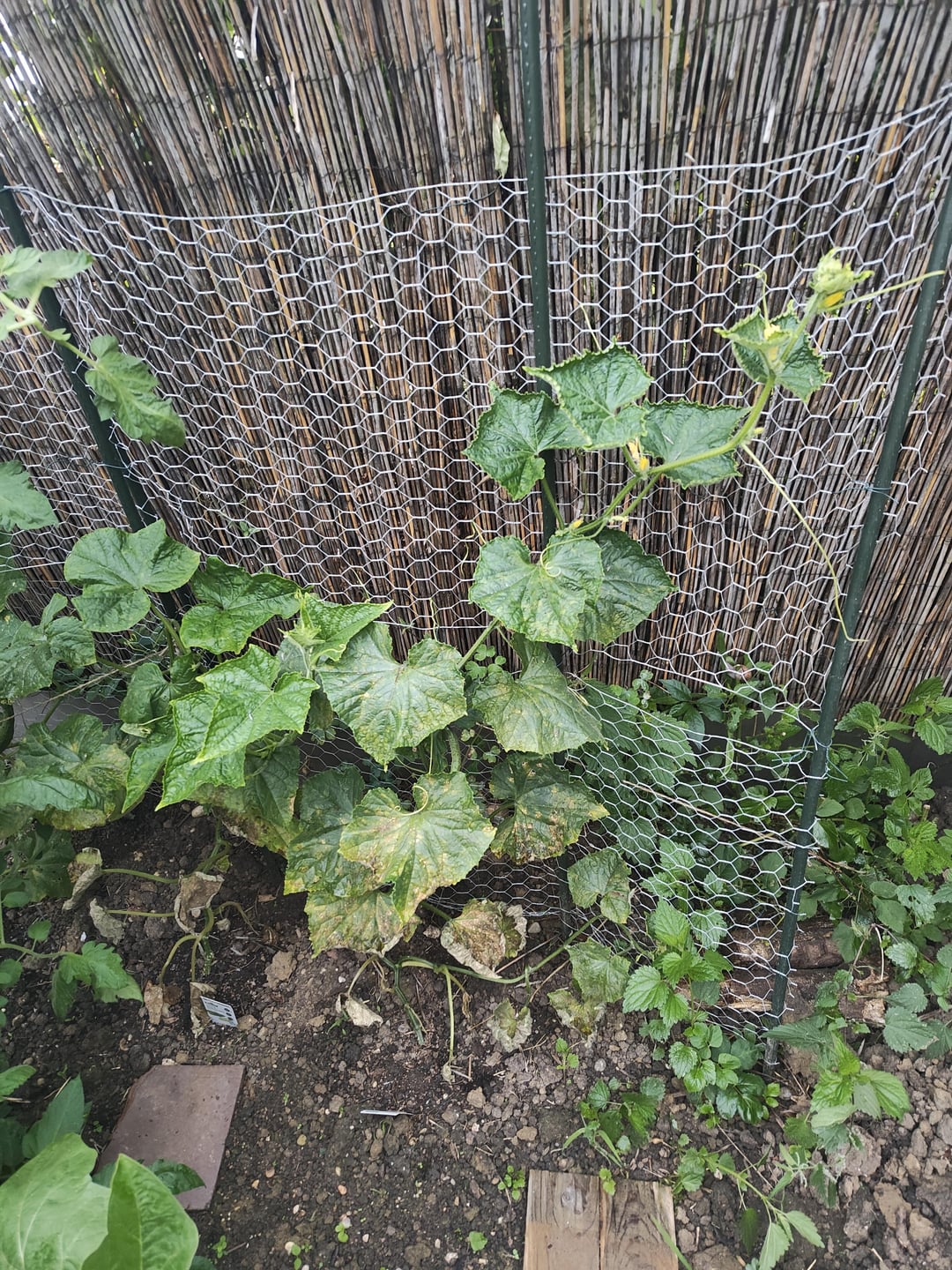 Die Blätter deuten auf einen Infekt mit dem Mosaikvirus hin.