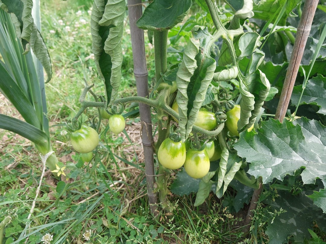 Die Schneckenlage hat sich mit einsetzender Trockenheit verbessert. Die sind wieder verschwunden und scheinen auch nachts nicht mehr aktiv zu sein. Leider habe ich ein paar Kartoffelkäfer entdeckt. Einer war sogar auf frischer Tat dabei, mir eine Auberginenpflanze am Haupttrieb zu kappen. In den Kartoffeln dürften die, die ich nicht erwischt habe, zum Glück nicht mehr viel Scahden anrichten: Die frühen Kartoffeln sind inzwischen oben komplett abgestorben, bei den mittleren fängt es jetzt langsam an. Nur bei den späten könnte es sein, dass die Käferlarven sich noch voll entwicklen können. Den Knollen wird das nicht mehr viel schaden, aber man will ja auch keine neue Generation für das nächste Jahr.