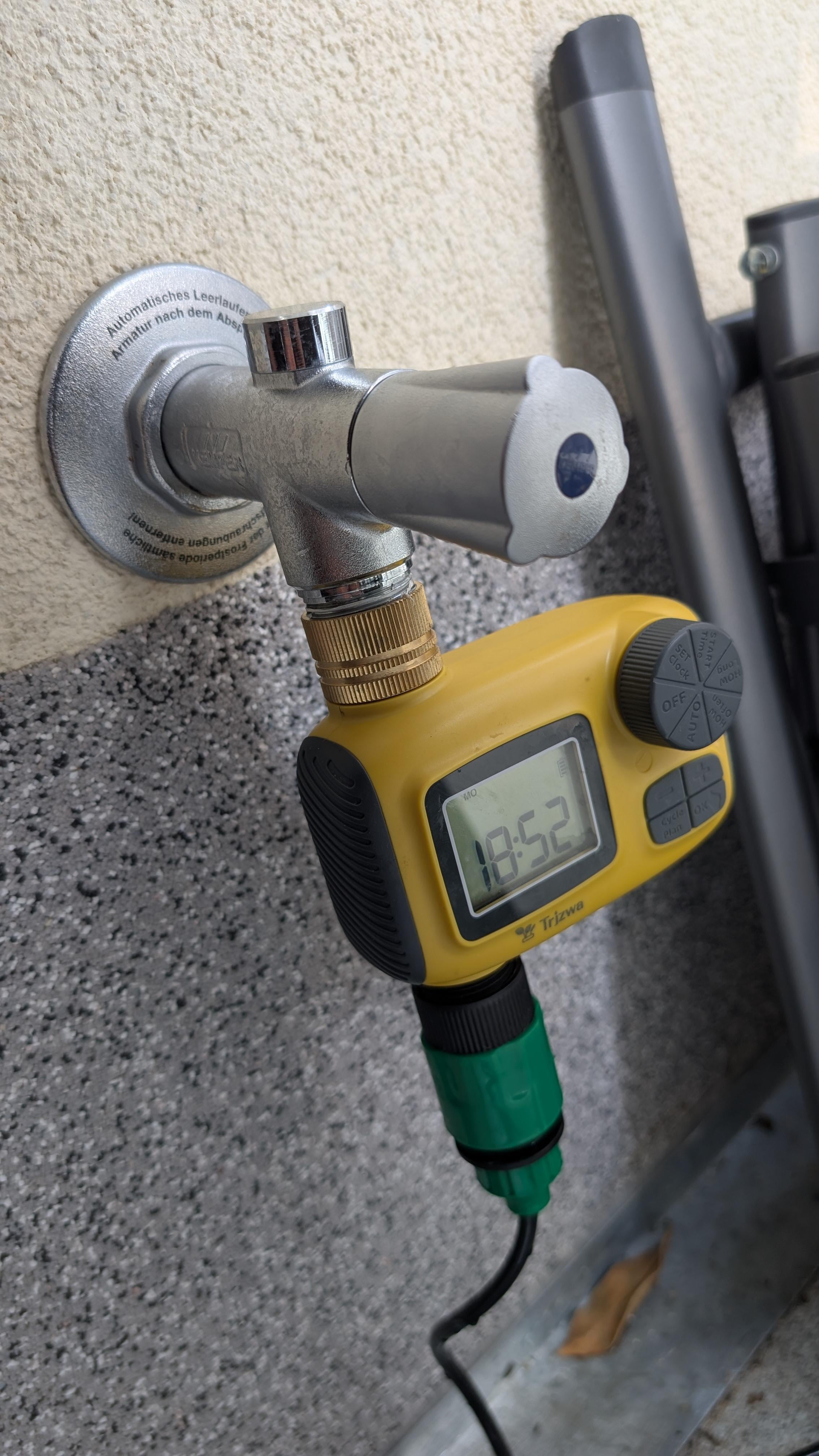ich wohne zur Miete und mein Balkon verfügt über einen Wasseranschluss. Nach der Inbetriebnahme des abgebildeten Bewässerungscomputers und Aufdrehen des Hahns ist es so, dass beim ersten Öffnen des Ventils Wasser kommt. Verschließt sich das Ventil im Computer nun wieder und öffnet erneut, kommt plötzlich kein Wasser mehr, so als wäre kein Druck mehr auf der Wasserleitung, trotz aufgedrehtem Hahn. Wird der Hahn wieder zugedreht und später wieder geöffnet, kommt meist auch wieder Wasser, jedoch wiederholt sich das eben genannte Problem.