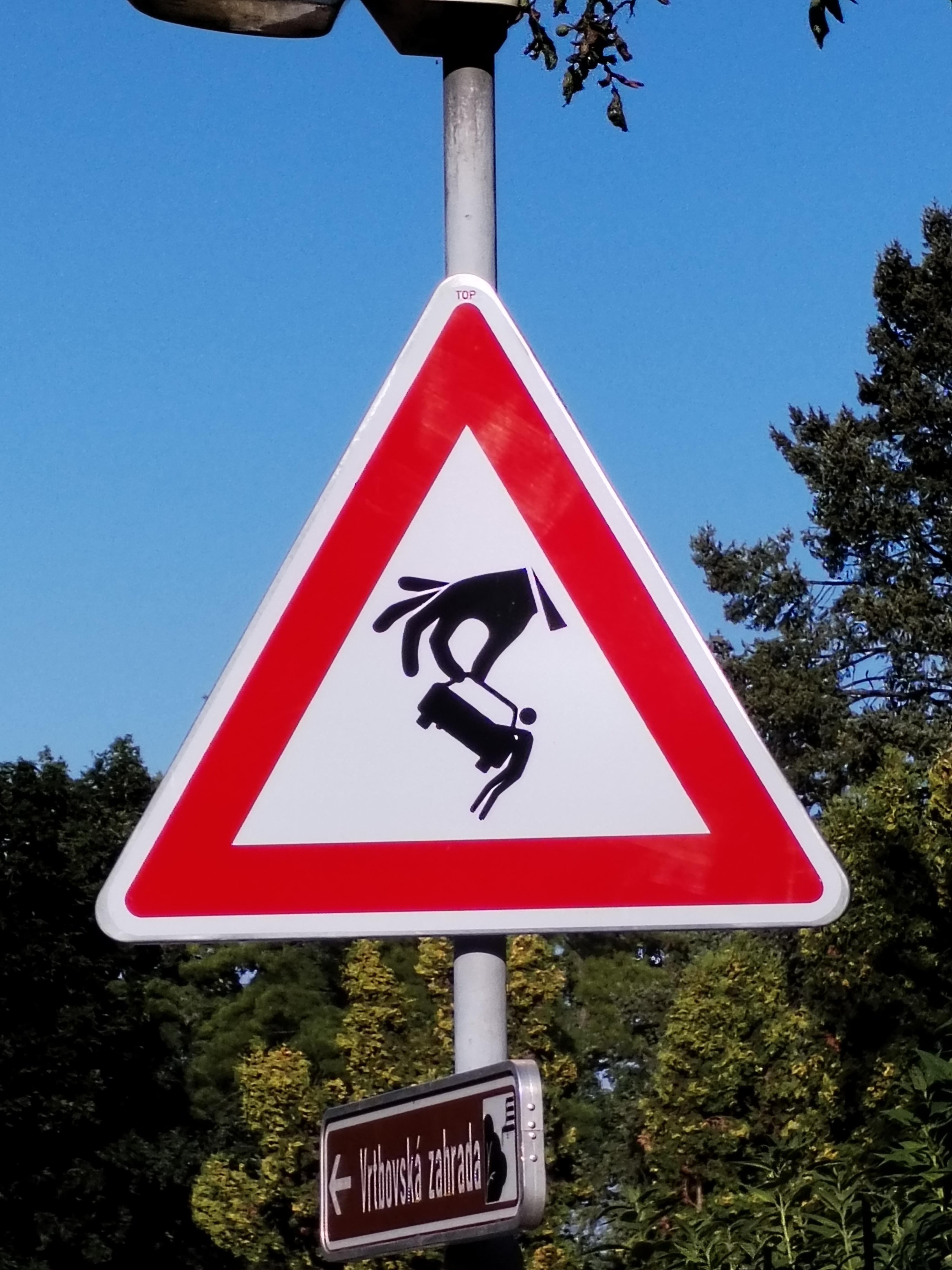 I'm on vacation in Prague, coming down from Petřín hill, I saw this sign. What the hell is this supposed to mean?