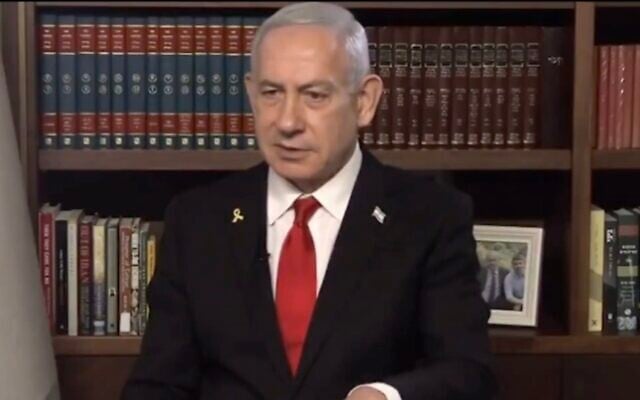 Screen capture from video of Prime Minister Benjamin Netanyahu during an interview with i24 News broadcast on August 13, 2025. (Screenshot: i24News)