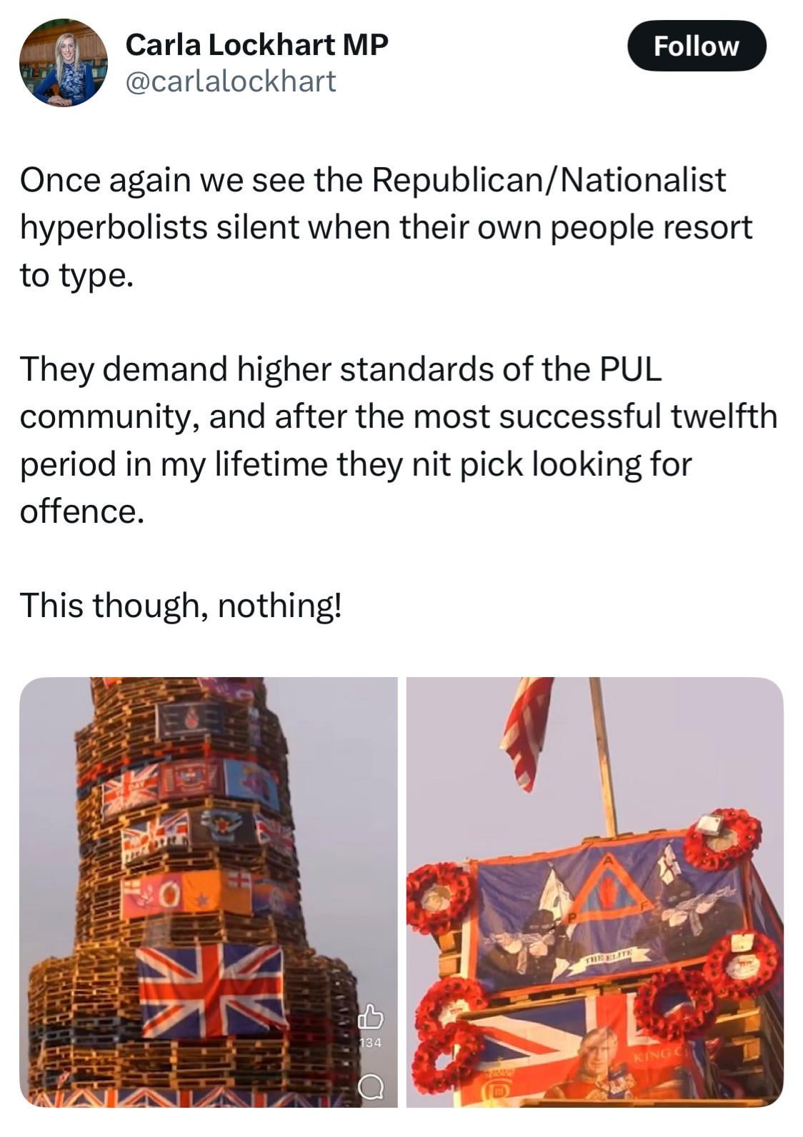 There’s been literally decades of dispicable displays on loyalist bonfires stfu Carla 😂