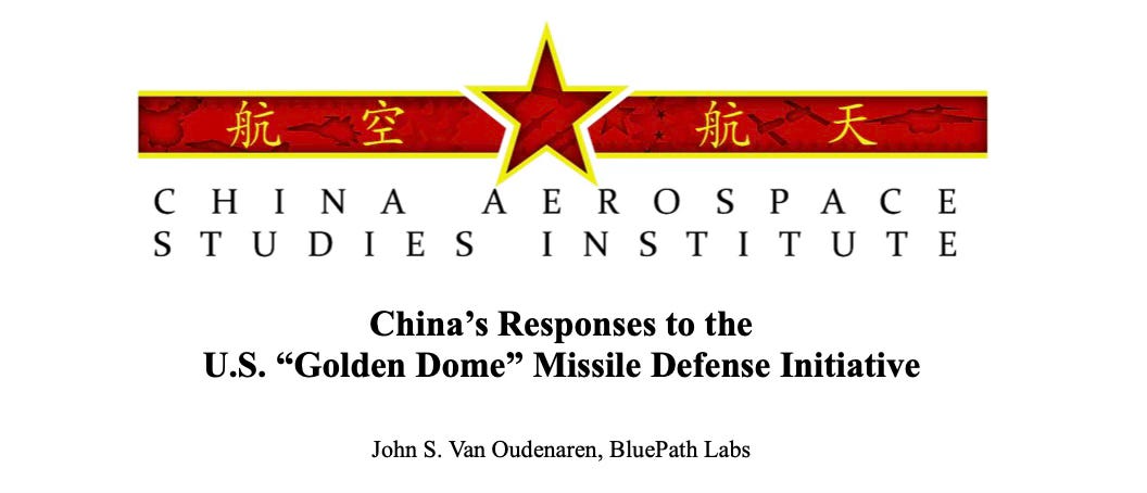 In this piece published by the China Aerospace Studies Institute, the authors examine how the Chinese regime views the development of America’s Golden Dome missile defence system. The authors describe how “the PRC has long been concerned by U.S. missile defense efforts. Beijing has expressed alarm over the U.S. Golden Dome system since its inception in late January.” You can read the full piece here.