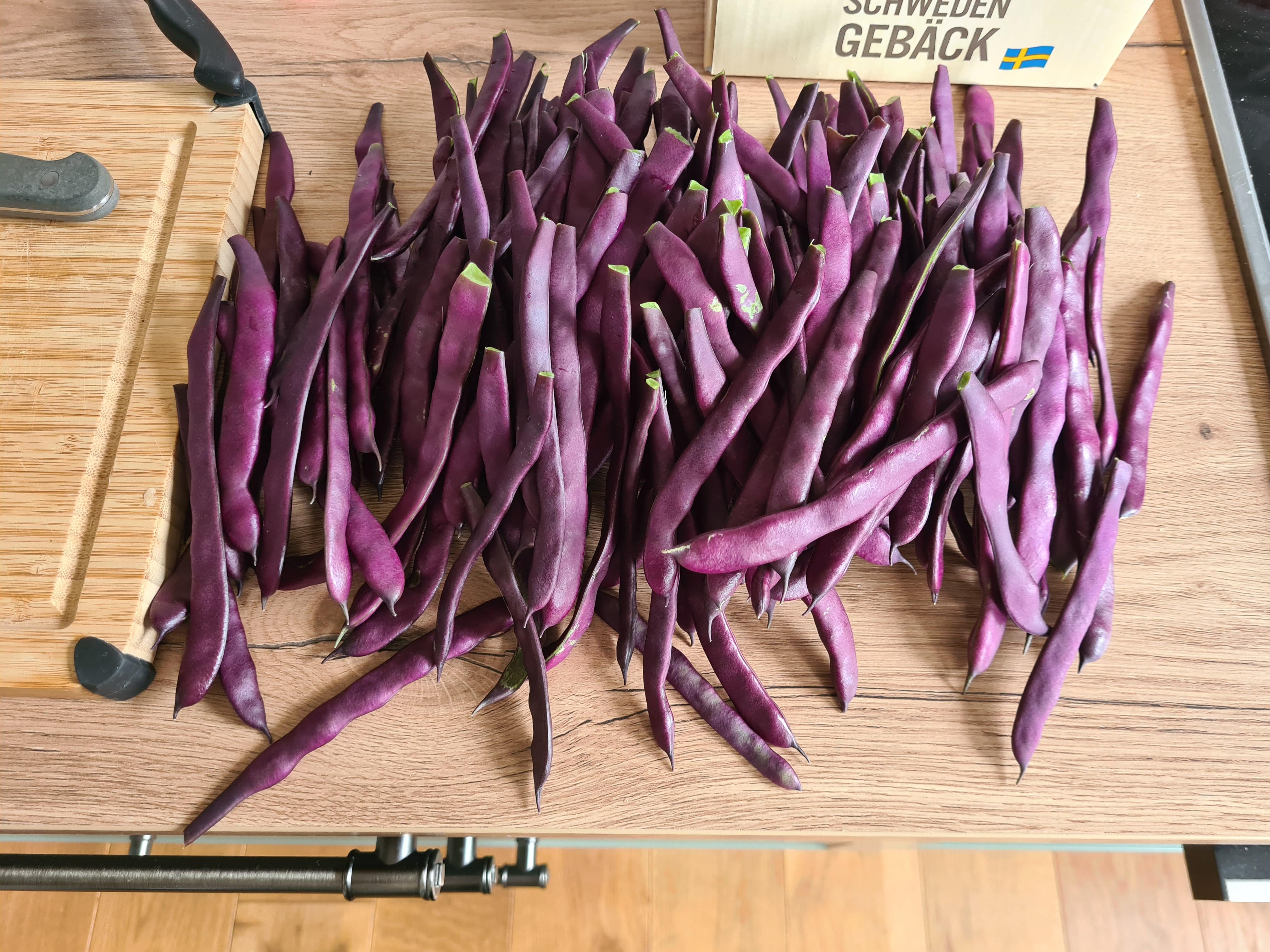 Ungefähr genauso viel ist schon eingefroren. Das hier wird Bohnensalat.