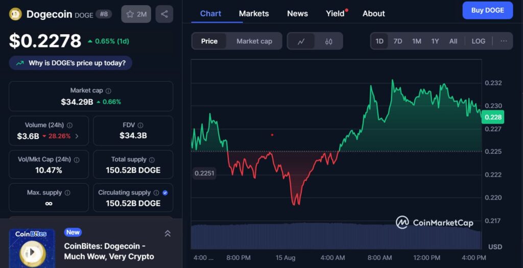 Right now, Dogecoin is trading around the $0.2300 mark, showing gains despite a slight drop. Technically, DOGE jumped to oversold levels while its Chaikin Money Flow turned positive. This shows that whales are accumulating the token.