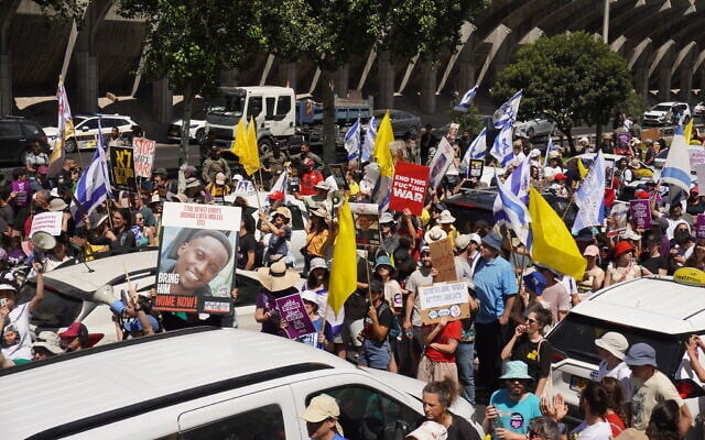 Also at the rally, organizers screened a video in which several released hostages beseeched US President Donald Trump to end the war and bring the hostages home.