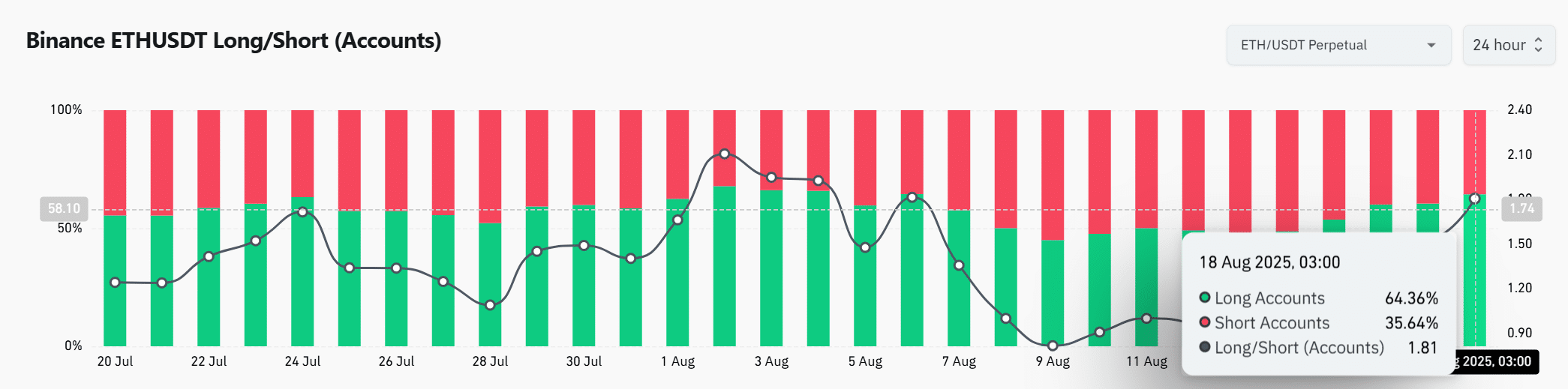 Derivatives data from Binance showed that long accounts dominated at the time of writing, with 64.36% compared to 35.64% short positions.