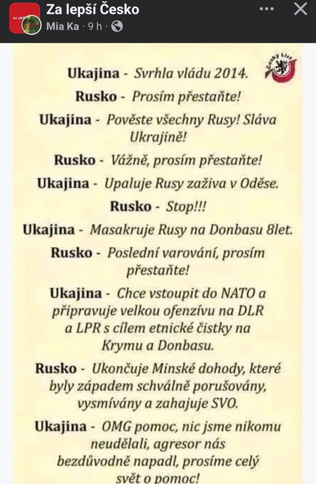 Mě na tom fascinuje jak se v dezopropagandě rok 2014 přetváří z chvíle nekonečné hanby, kdy rusko zcela jednoznačně a naprosto neopodstatněně napadlo jako první od druhé světové války cizí stát v Evropě proto, aby jeho území připojilo ke svým hranicím – na naopak jakési mýtické nevyřčené opodstatnění jakékoliv ruské barbarity. “Rok 2014 mrk mrk” “A co s ním?” “No Azov. Fašisti.” “Co jako s nimi?” “Jak dělali ty zločiny.” “Jaké?” “Kdo ví ten ví.”