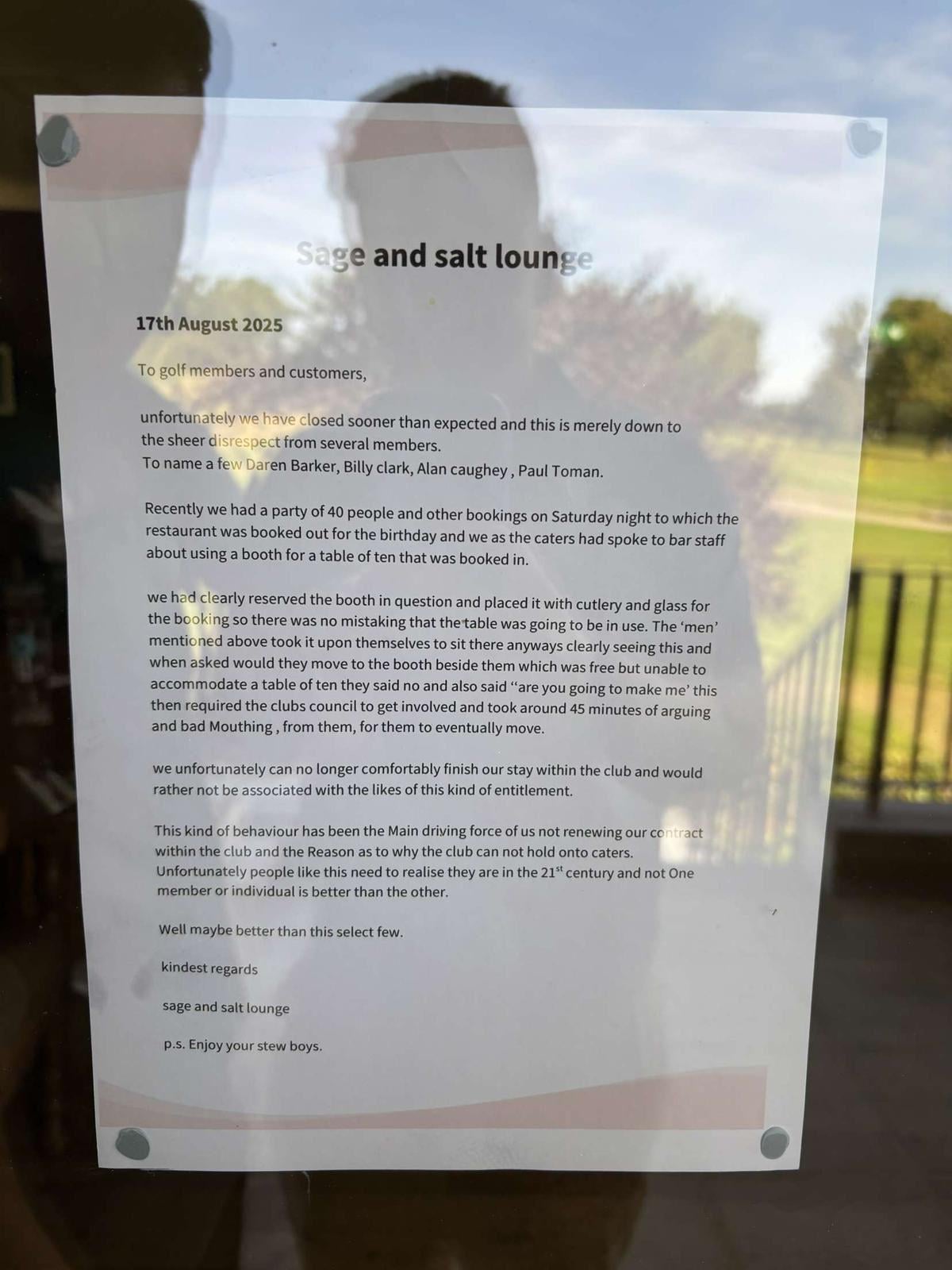 Fair play to them calling out the rotten behaviour. You can tell a lot about a person by the way they treat hospitality staff.