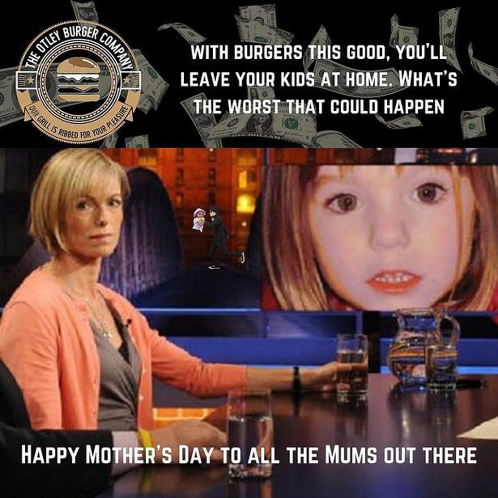 But it is sort of referencing the actions of Madeleine’s parents here. If you don’t want to end up the butt of memes and shit like this, don’t leave your kid alone in a foreign hotel room whilst you go eat a meal lol.