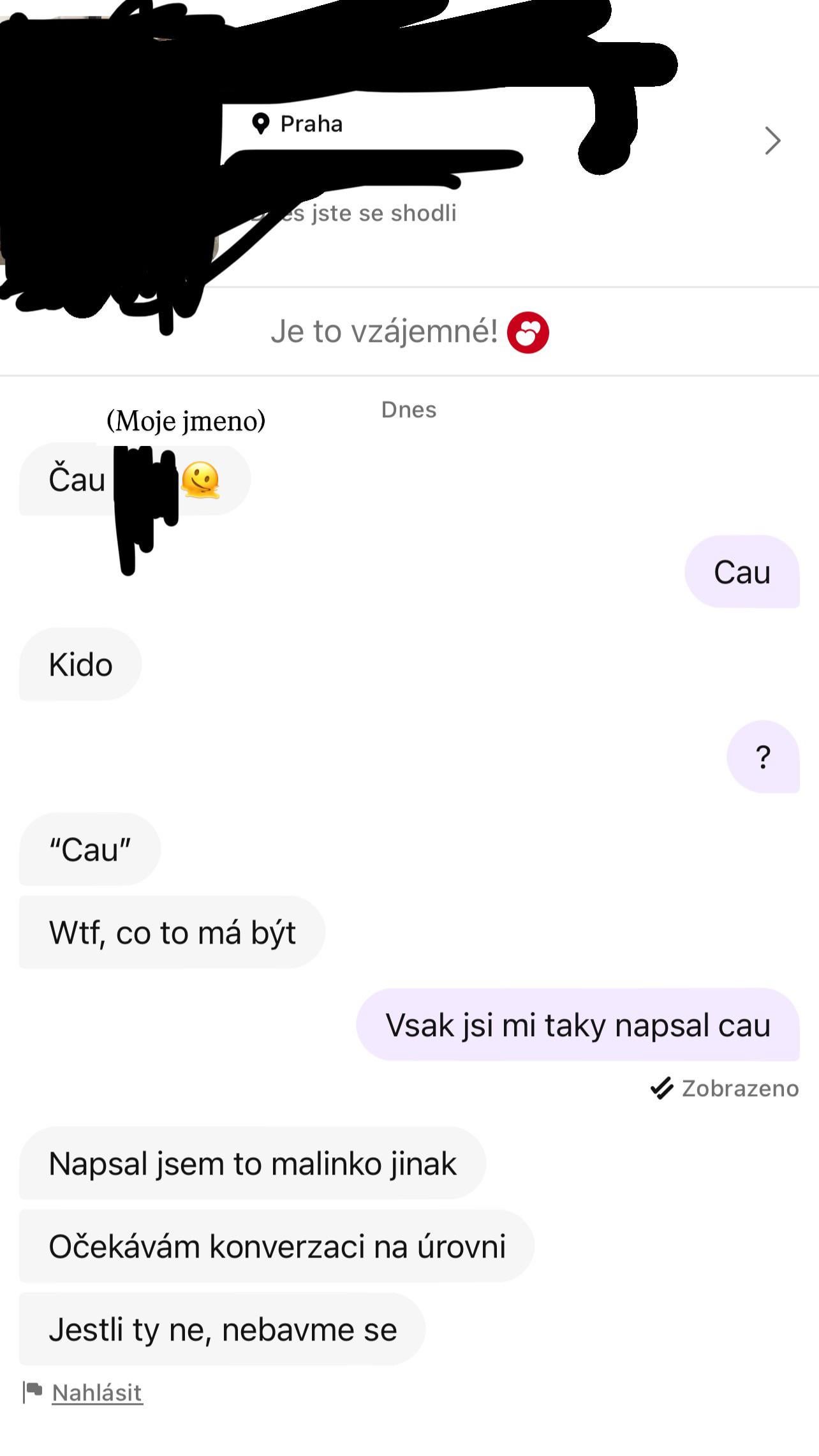 22. Tvl a já se snažím jak dement napsat vždy něco inteligentního a nějak tam promítnout profil toho člověka a nedostane se jí ani odpovědi a tady koukám stačí jenom Čau
