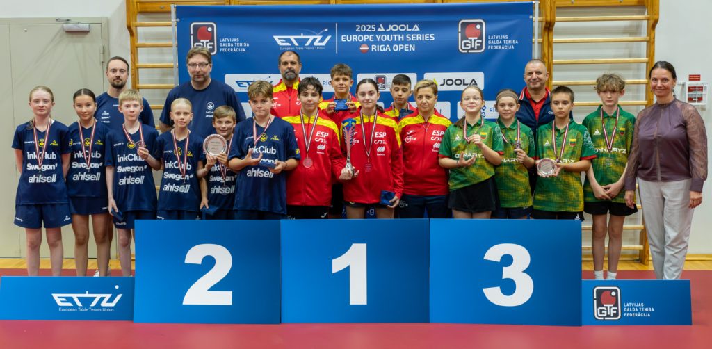 On the second day of play at the JOOLA Europe Youth Series in Riga, the Mixed Teams champions were crowned. Spain triumphed in the Under 13 category, while the combined team of Germany, Denmark, and Serbia secured the title in the Under 15 event. Both teams lived up to their top-seeded status.