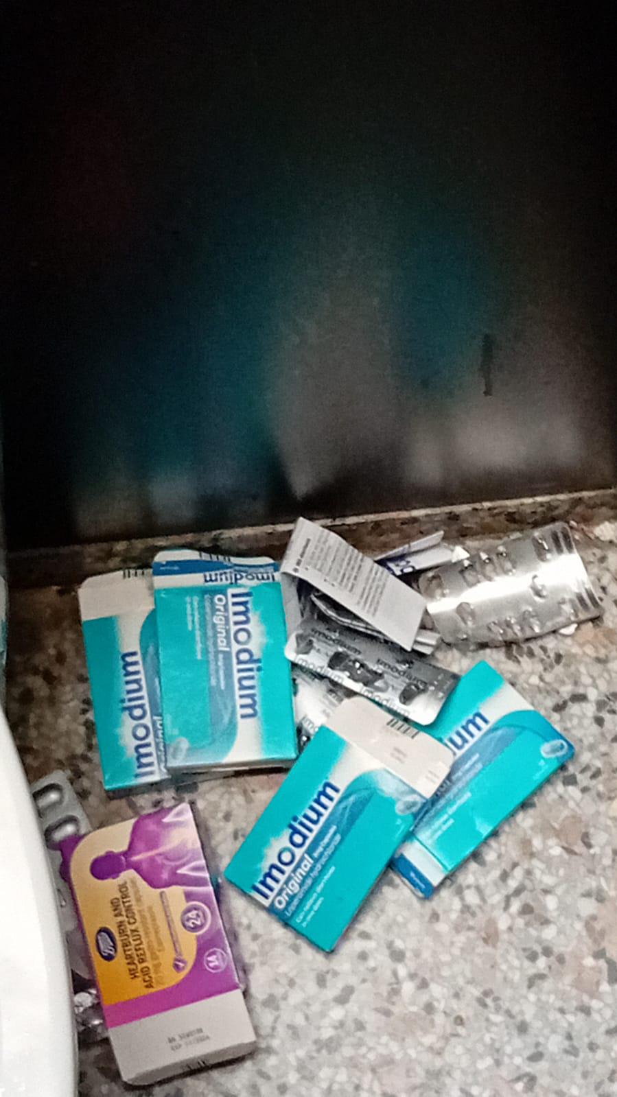 I spotted this last Sunday when flying from Antrim Belfast International. Why would anyone want to seriously wreck themselves by taking so many Imodium tablets, with a side-order of acid-reflux tablets? This has been on my mind for a week, and I hope that person is not dead. What do you guys think?