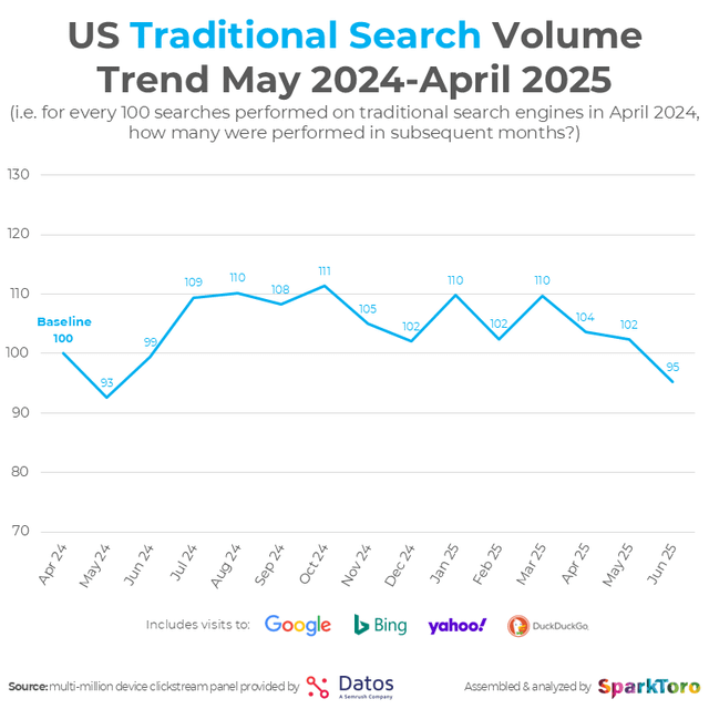 1. Does this factor using them for things unrelated to searching? Could it be that more people are using AI tools, but not for searching(which I know AI usage instead of searching is alarmingly common).