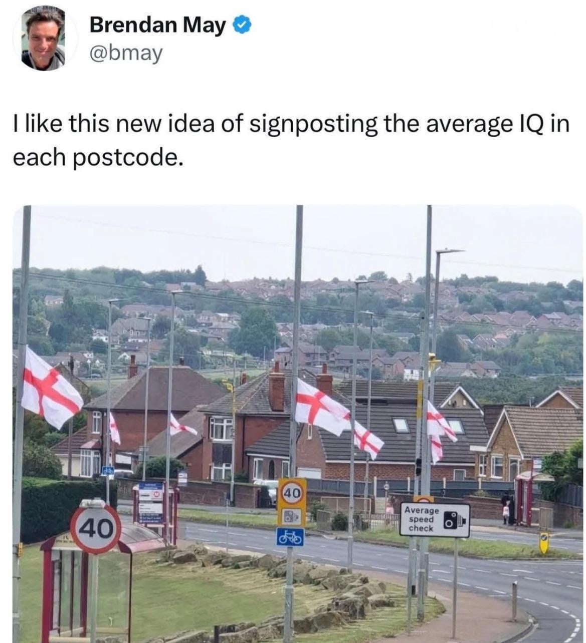6. Ah don’t start me. Thought we’d escaped all this territorial fleg nonsense living in South West England and now these bloody red crosses are popping up everywhere. Crap, badly sprayed on crosses. And like back home, these dickweeds aren’t vandalising their own property. Wankers