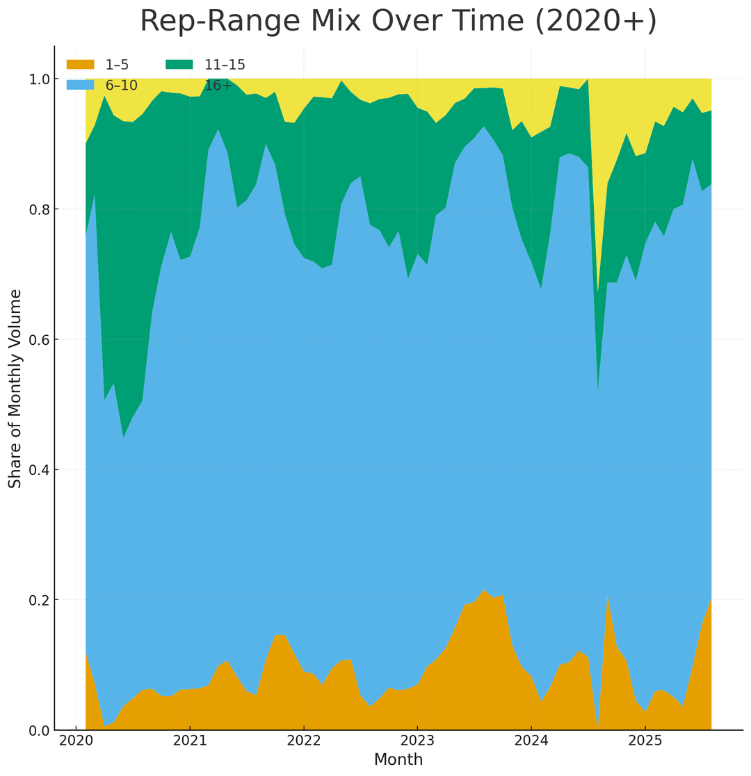 Overall, pretty cool to see what 5 years of lifting and 700 workouts as a casual look like. Let me know if I should add any other graphs. o7