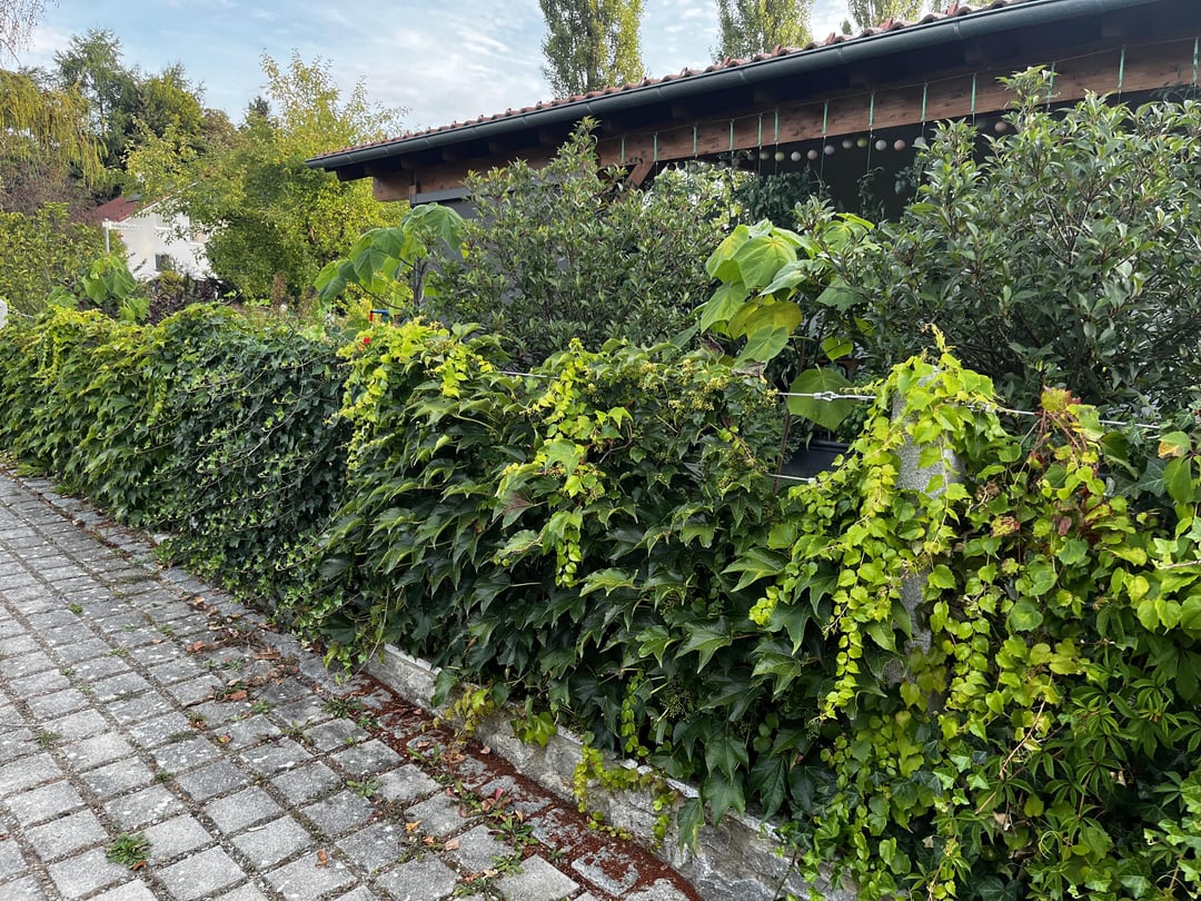 Die Magnolie haben wir dieses Frühjahr frisch eingesetzt. Die anderen Pflanzen stehen da schon 3 Jahre. Und nicht mal der Efeu mag am Zaun hochwachsen…