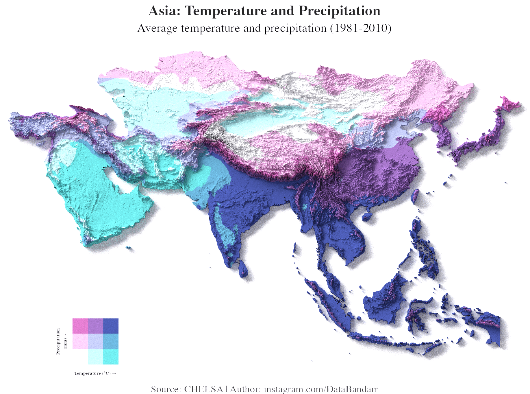 [OC] Temperature and Precipitation Across Asia (1981-2010)