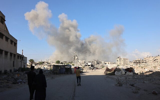 Smoke billows after an Israeli army operation in the Zeitoun neighborhood of Gaza City on August 26, 2025. (Omar Al-Qattaa / AFP)