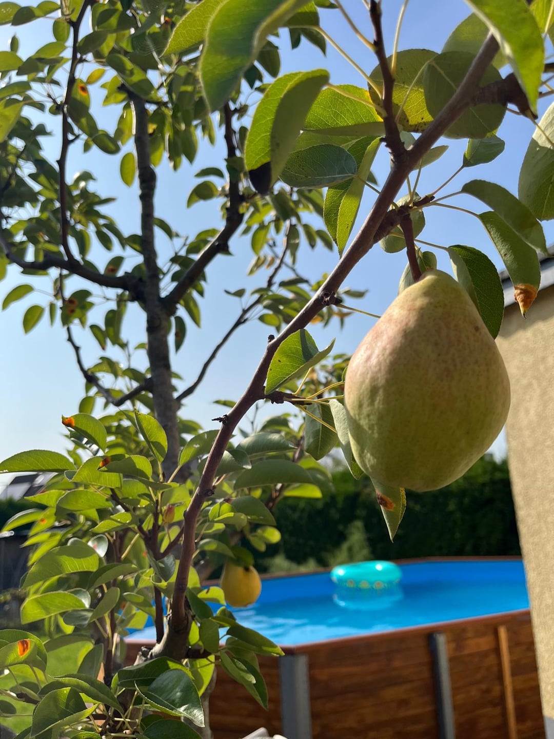 Unser Birnenbaum hat dieses Jahr seine ersten Früchte, ich freue mich schon sehr drauf diese zu testen. Ich hoffe sie haben nicht so viele Würmer wie unsere Äpfel.