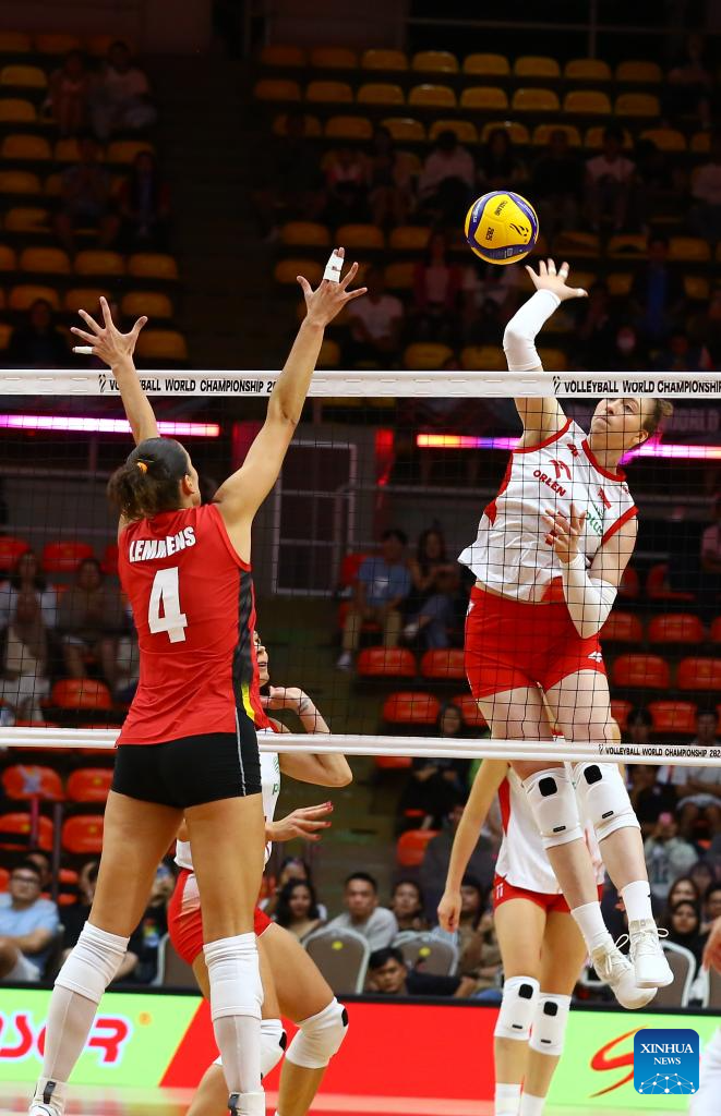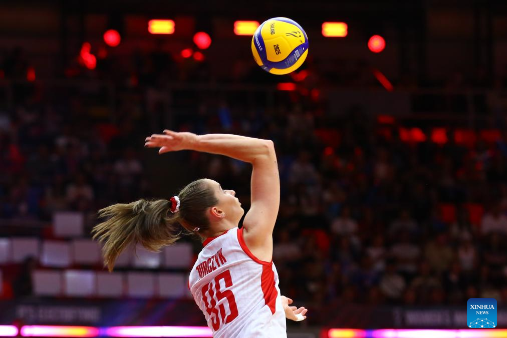 Magdalena Jurczyk of Poland competes during the round of 16 match between Poland and Belgium at the Volleyball Women’s World Championship in Bangkok, Thailand, Aug. 30, 2025. (Xinhua/Sun Weitong)