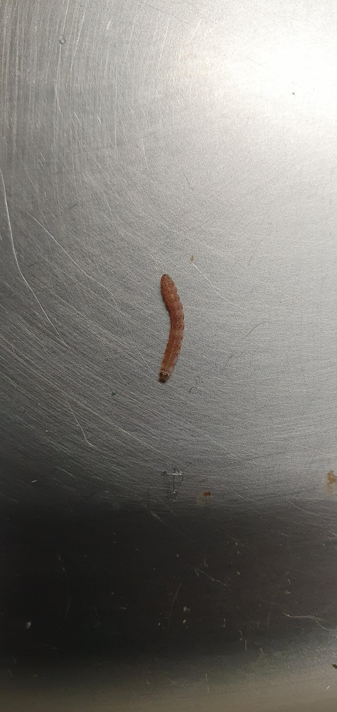 vor ein paar Tagen hatte ich unter einem Holzbrett in der Küche, das auf einem stillgelegten Spülbecken liegt, das erste Mal 2 dieser Raupen. 2 Tage später dann den Freund hier an genau derselben Stelle – und gestern, wieder 2 Tage später, dann eine winzige Version davon, nachdem ich den Abfluss nochmal 'besser' abgeklebt hatte (wollte eig. mit meinem Freund zusammen drauf gucken, aber der kommt erst heute wieder – deswegen vorerst zugeklebt). Ich habe dann gestern den Abfluss geöffnet und Wasser durchlaufen lassen – es wurde ein altes Zewa rausgespült, von dem ich hoffe, dass es die Brutstätte der Raupen war. Jetzt würde ich trotzdem gerne wissen, was genau für Tiere wir da bei uns hatten. Habe alles an Vorräten durchsucht und finde keine Hinweise auf Lebensmittelmotten oder andere Schädlinge. Ich finde die Farbe passt auch nicht wirklich dazu. Durch den immer selben Fundort halte ich das Abflussrohr tatsächlich für am wahrscheinlichsten als Quelle – auch, wenn ich im Zewa und nach dem Ausspülen nicht zweifelsfrei irgendwelche tierischen Nester o.ä. feststellen konnte (heißt aber nichts).