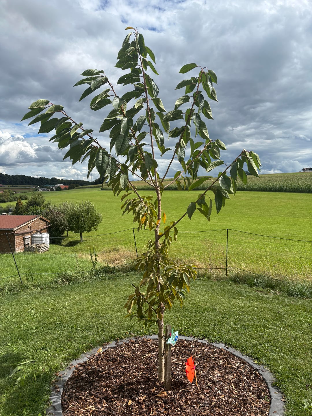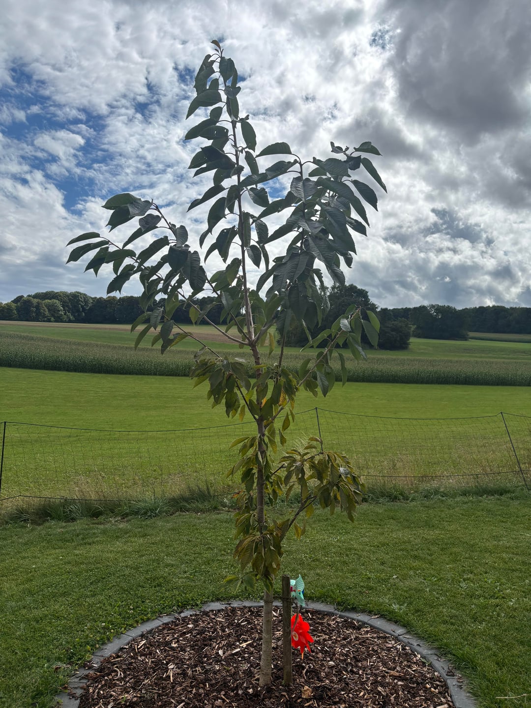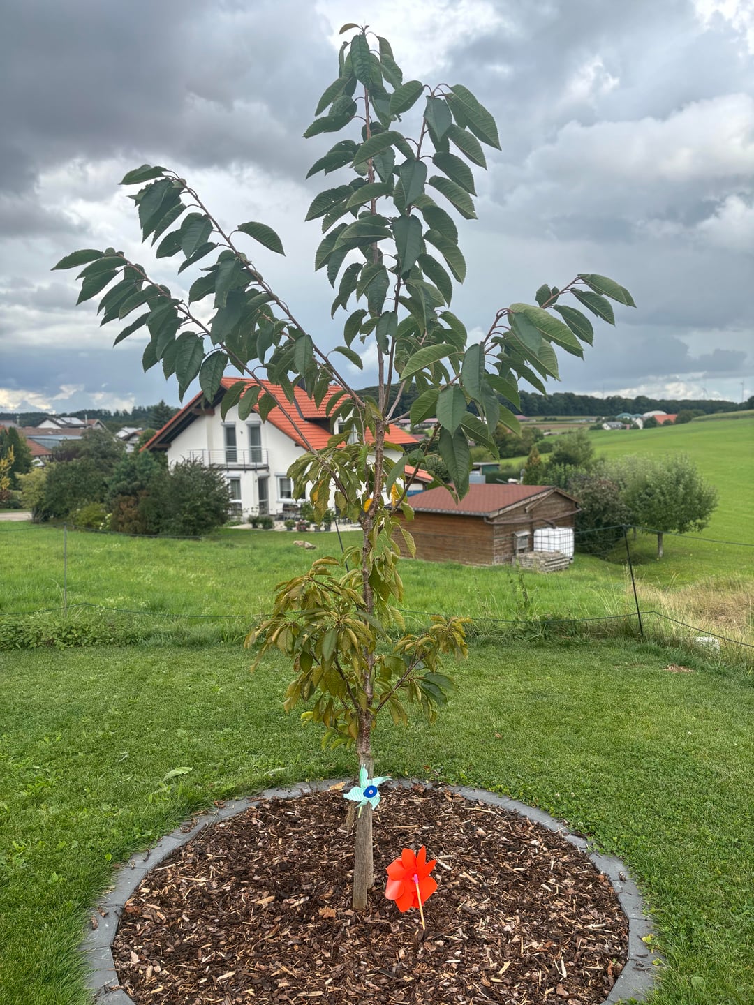 Dieser Kirschbaum wächst schnell, weil er offensichtlich ein sehr gutes, regelmäßig regnerisches Jahr hatte. Das weiß ich von meinen Nüssen.