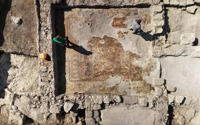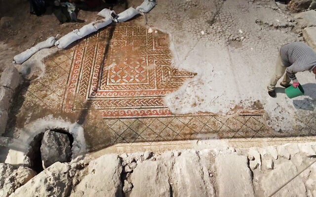 A mosaic in a 4th-century Samaritan estate recently uncovered in Kafr Qasim, central Israel, during an excavation by the Israel Antiquities Authority, in a discovery announced on September 2, 2025. (Emil Aladjem/Israel Antiquities Authority)